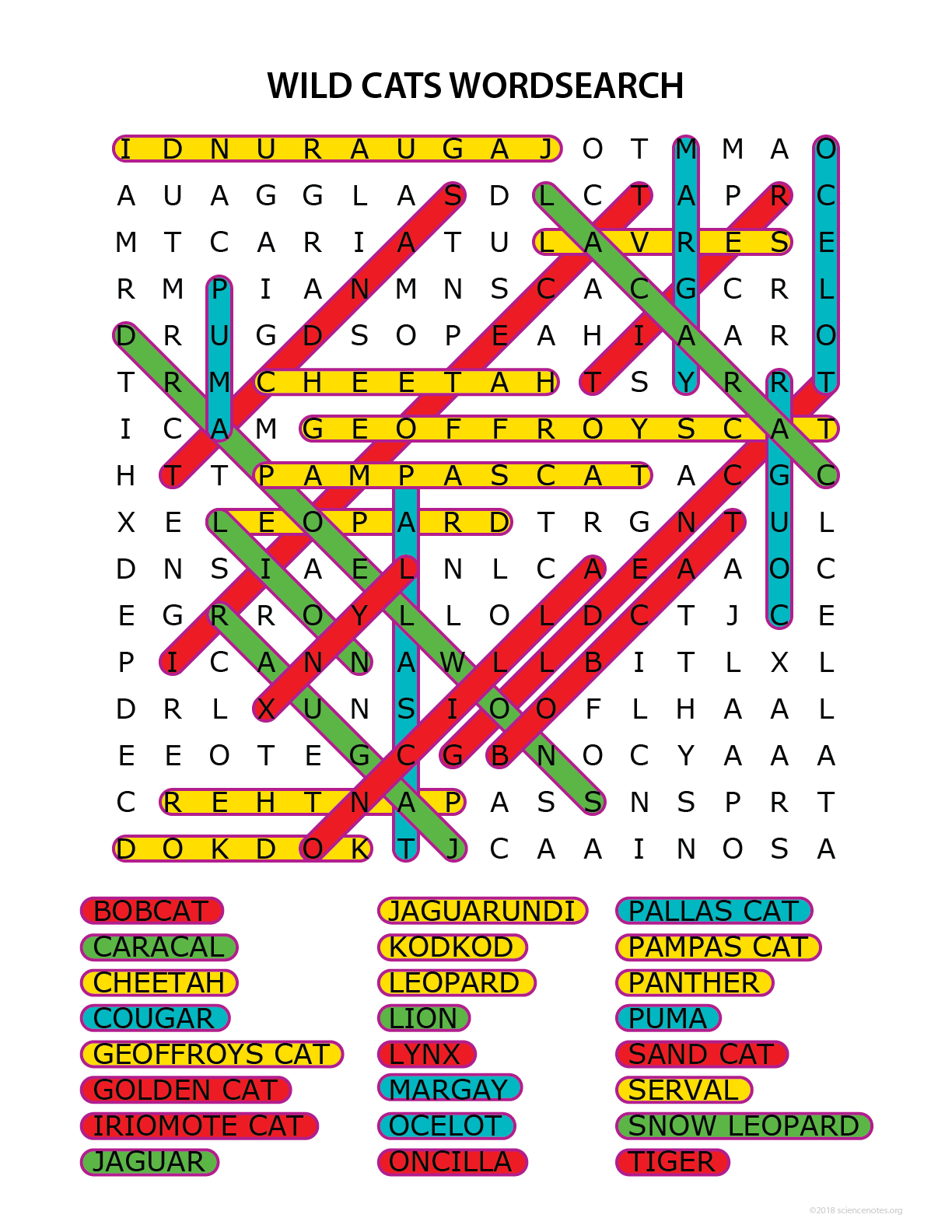 Wild Cats Word Search