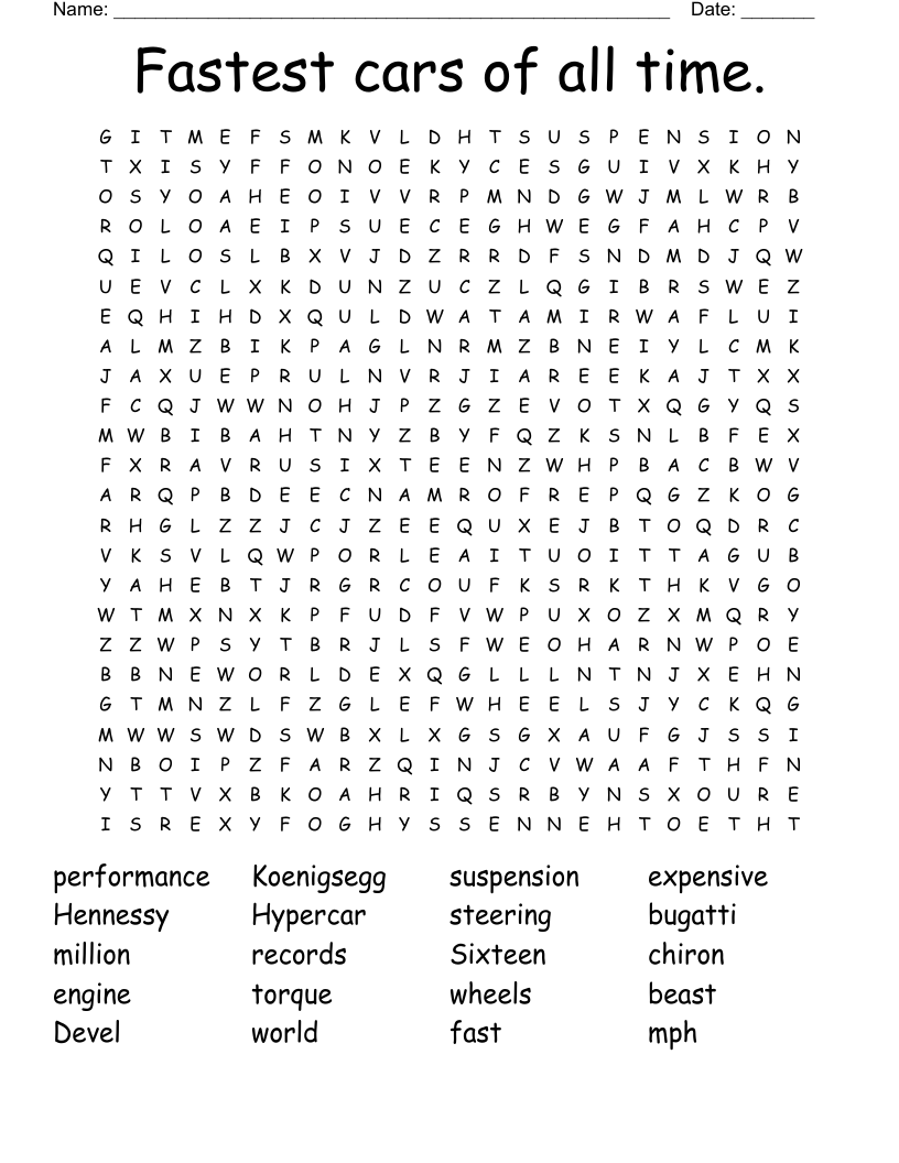 Fastest Cars Of All Time Word Search WordMint