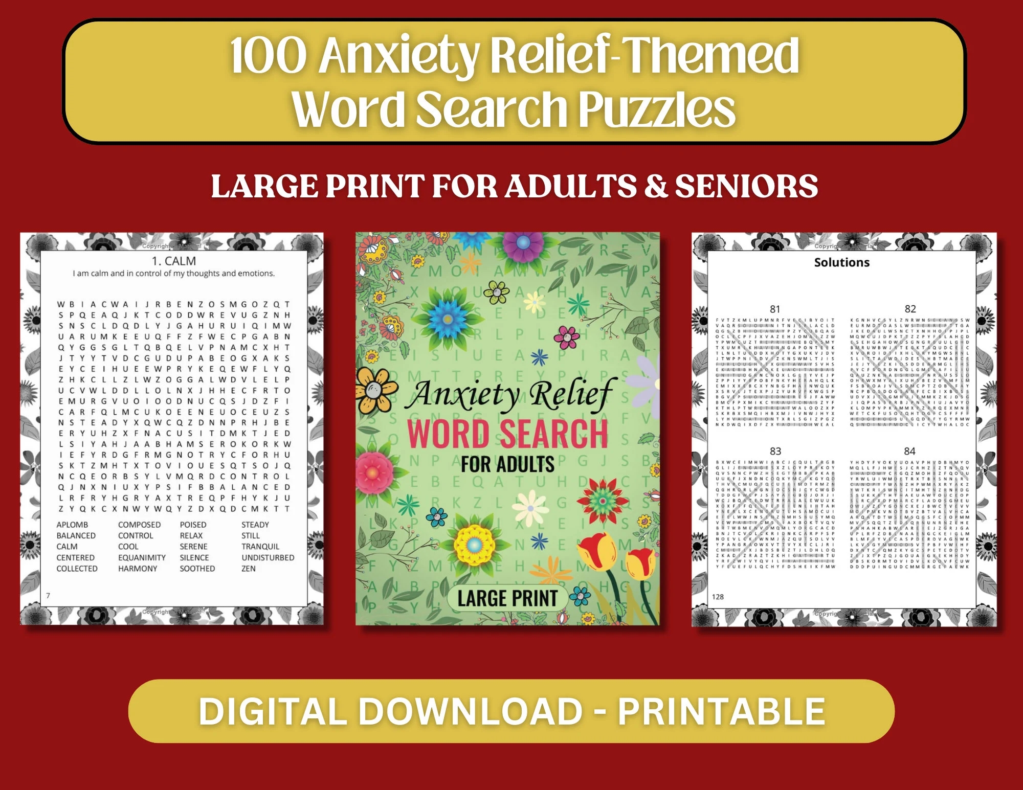 100 Anxiety Relief Word Search Printable Word Search For Adults Seniors Mindfulness Word Search Printable Mental Health Word Search Etsy