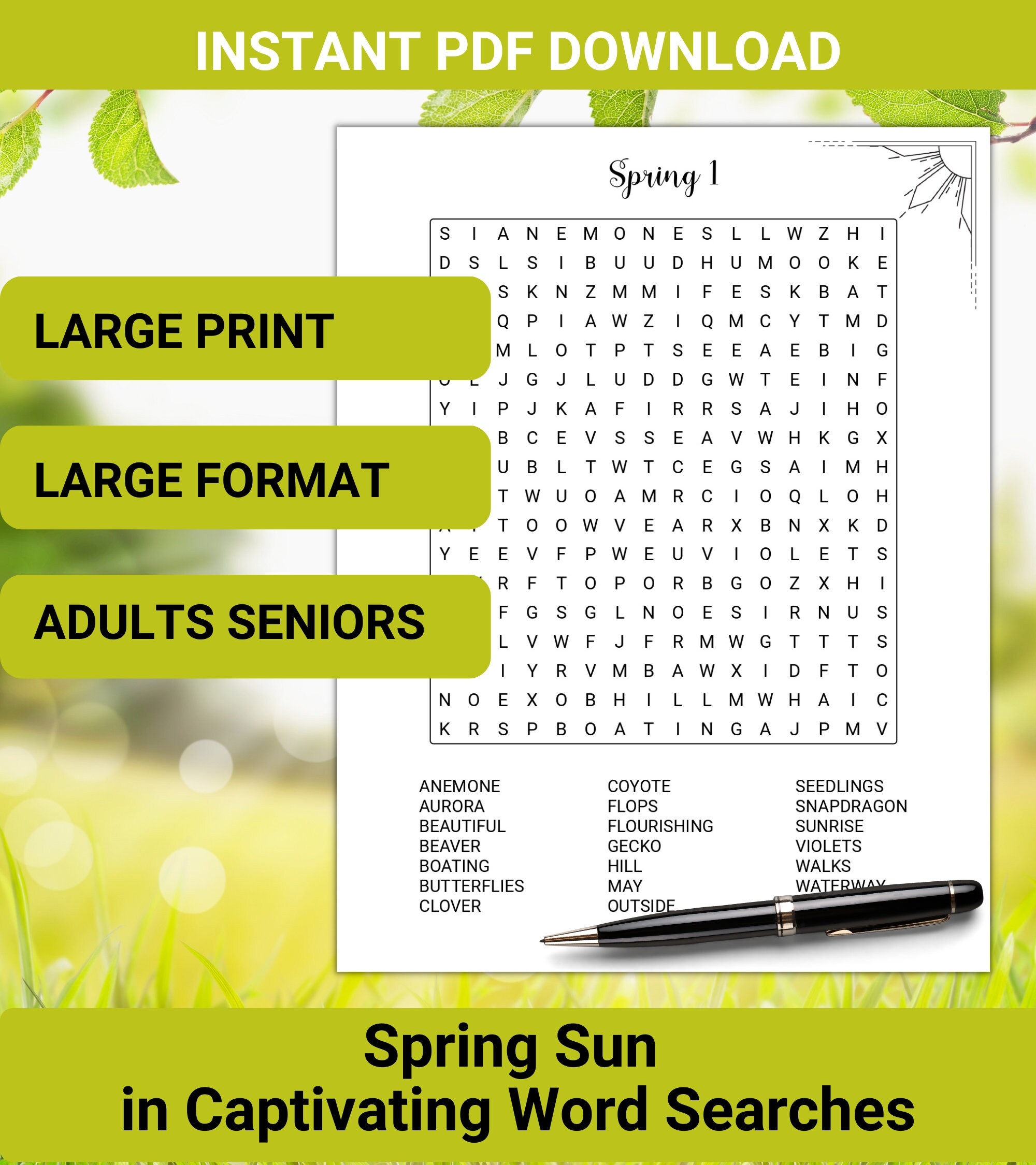 30 Print Word Search Puzzles On The Spring Large Print Adults Seniors Instant Download Printable PDF Etsy