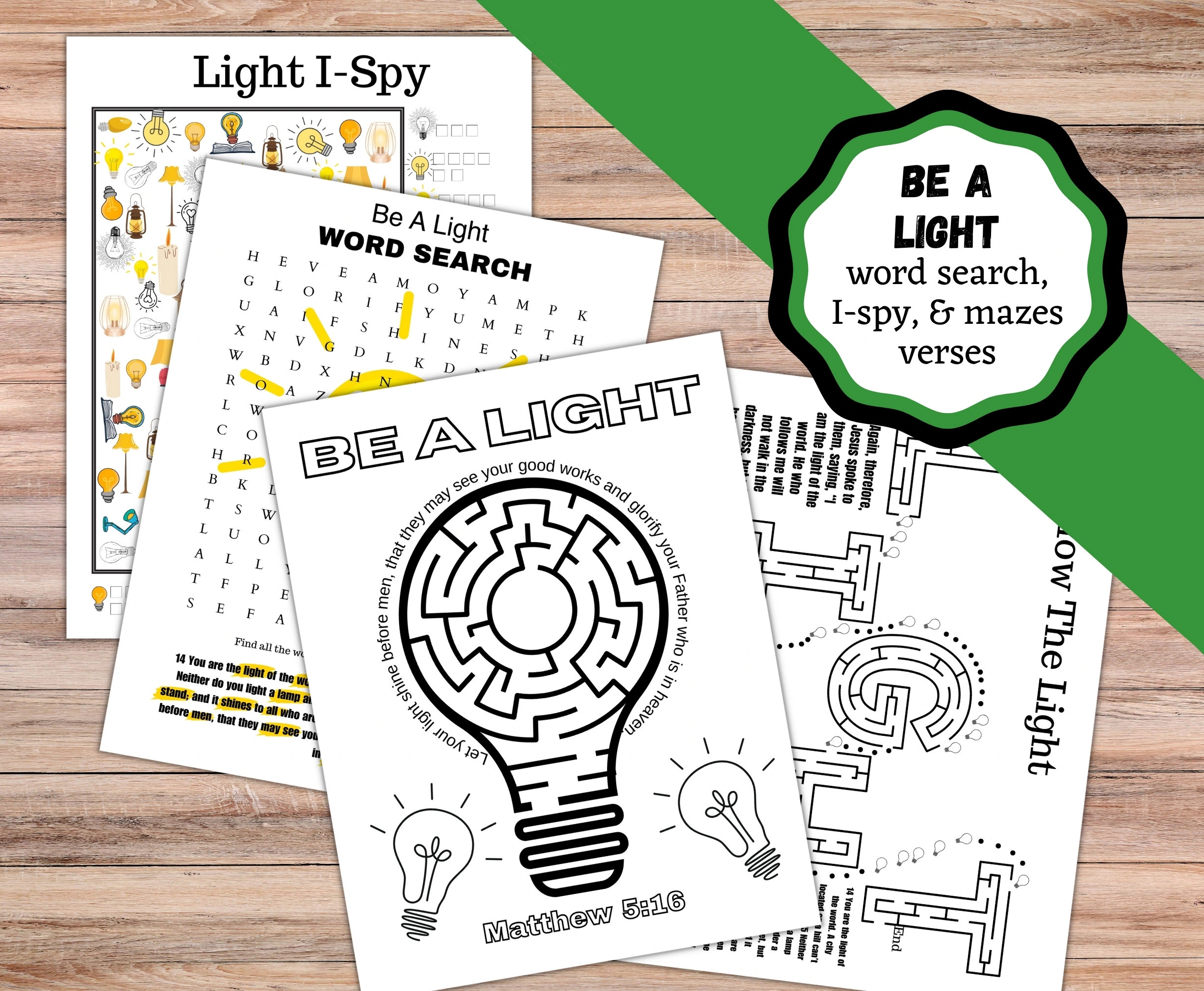 Printable Word Search I spy And Mazes For Being A Light For Jesus Let Your Light Shine Activity Pages Bible Based Activity Pages Etsy