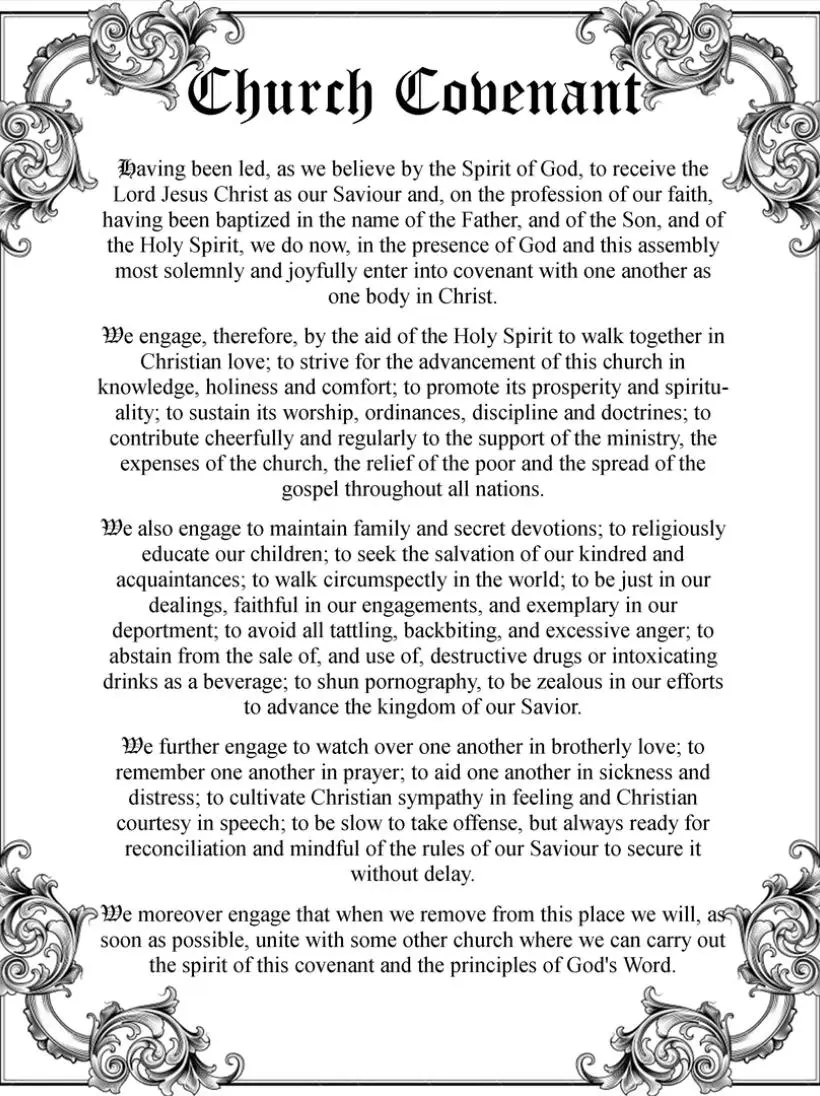 Printable Baptist Church Covenant Printable Party Favors