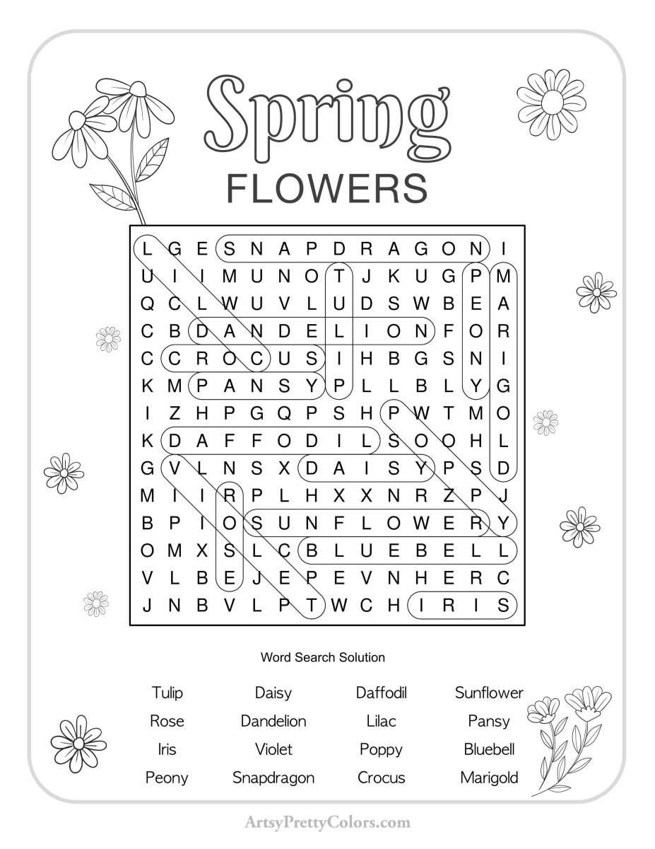 Free Spring Word Search Puzzles Printable PDFS Artsy Pretty Colors