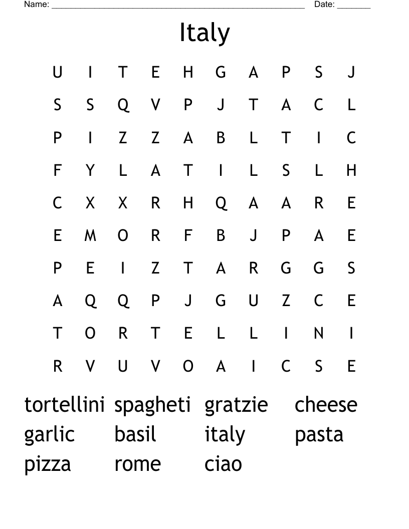 Italy Word Search WordMint