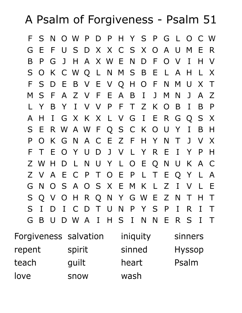 A Psalm Of Forgiveness Psalm 51 Word Search WordMint