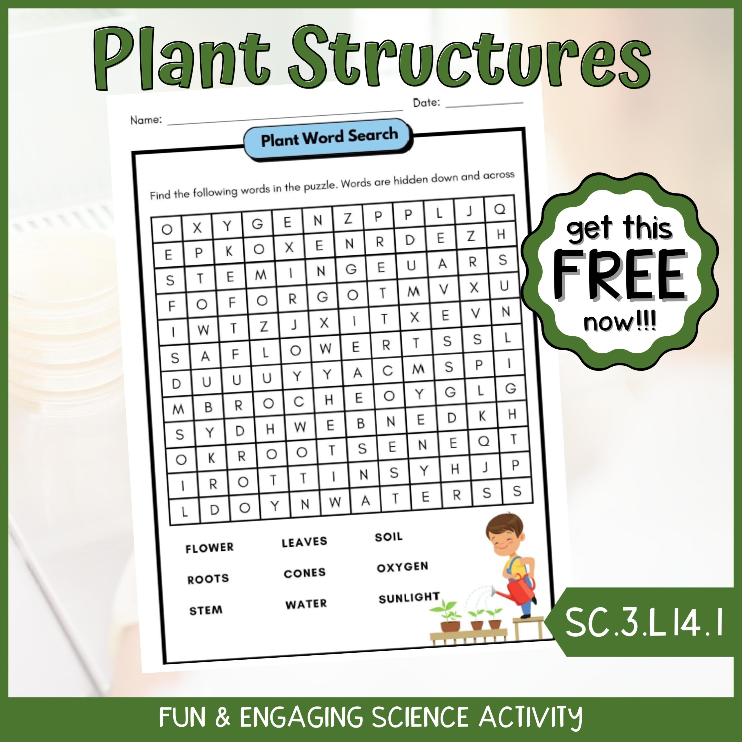 FREE Plant Structures And Functions Word Search Fun Science Activity Classful
