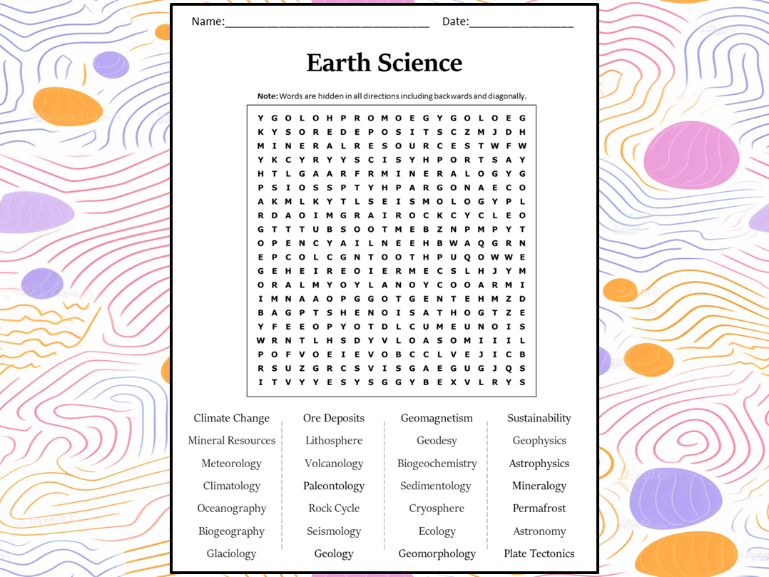 Earth Science Word Search Puzzle Worksheet Activity Teaching Resources