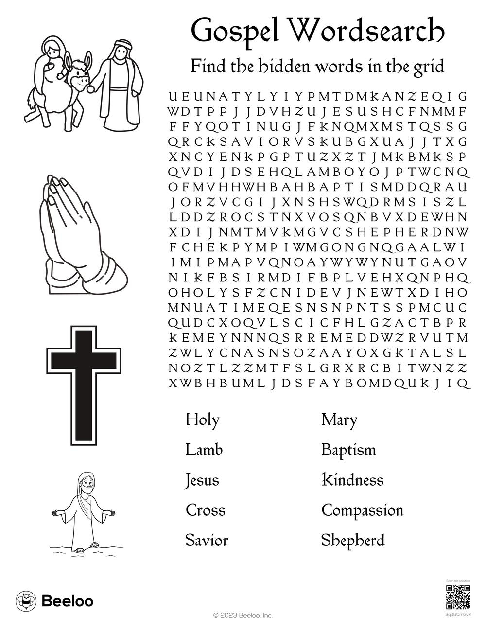 Gospel Wordsearch Beeloo Printable Crafts And Activities For Kids