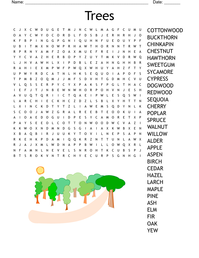 Trees Themed Zigzag Word Search Puzzle suitable Both For Kids And Adults Answer Included Stock Vector Image Art Alamy