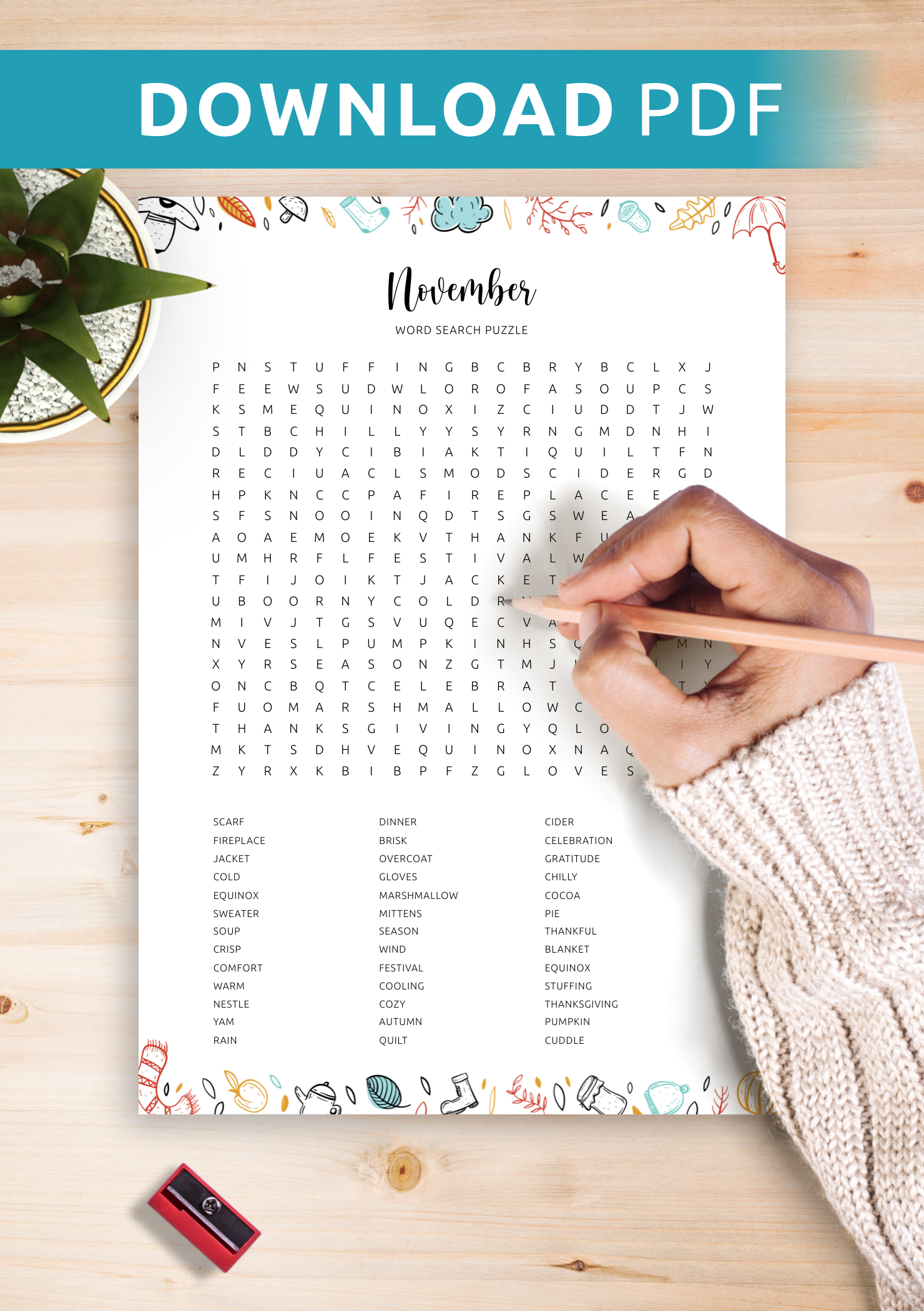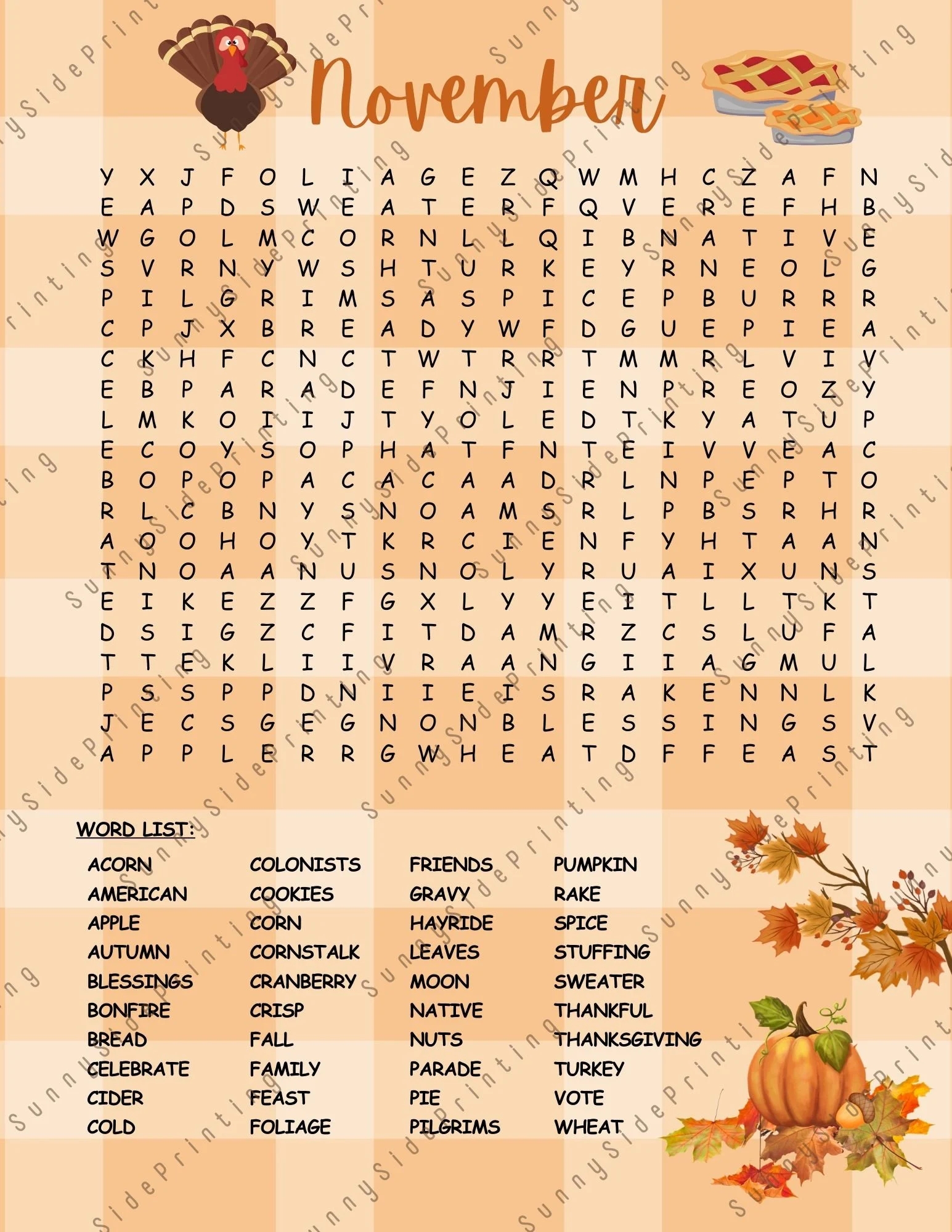 Download Printable November Word Search In PDF