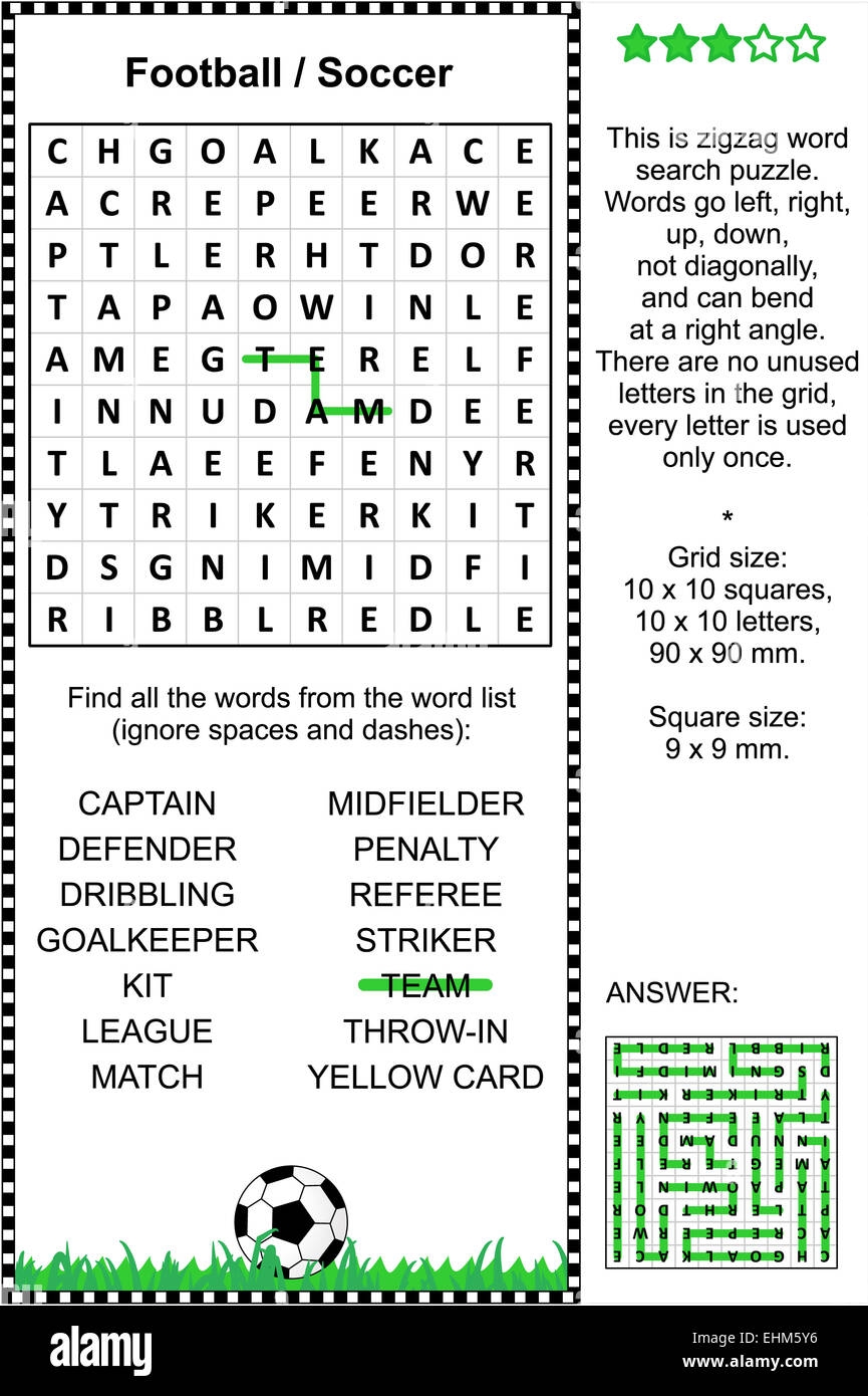 Football soccer Themed Word Search Puzzle suitable Both For Kids And Adults Answer Included Stock Photo Alamy