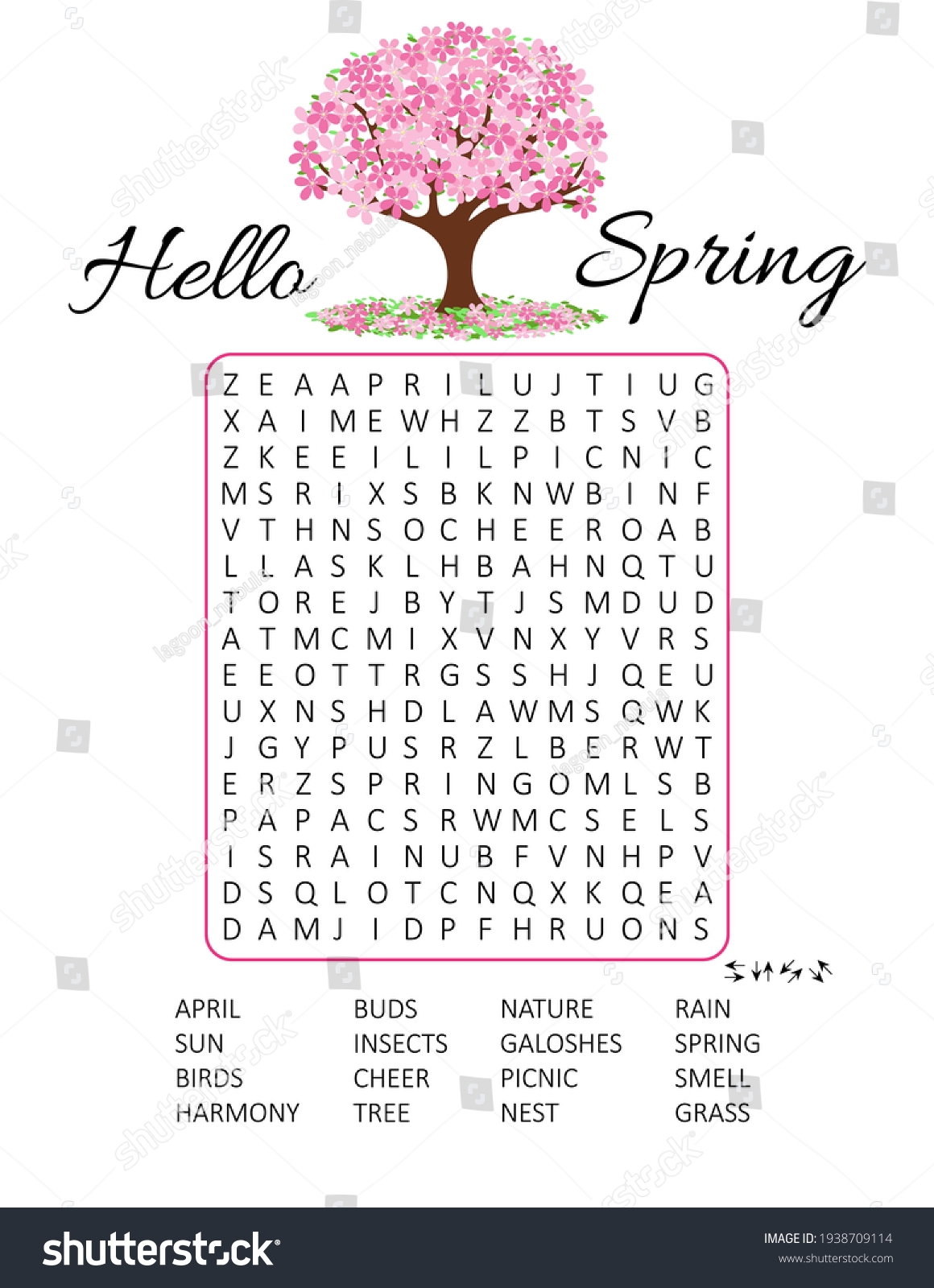 Hello Spring Word Search Puzzle Cherry Stock Vector Royalty Free 1938709114 Shutterstock