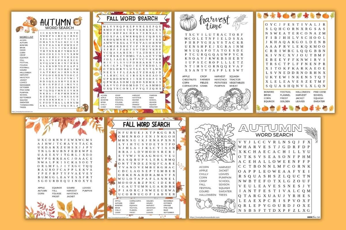 Free Printable Fall Word Searches For Kids