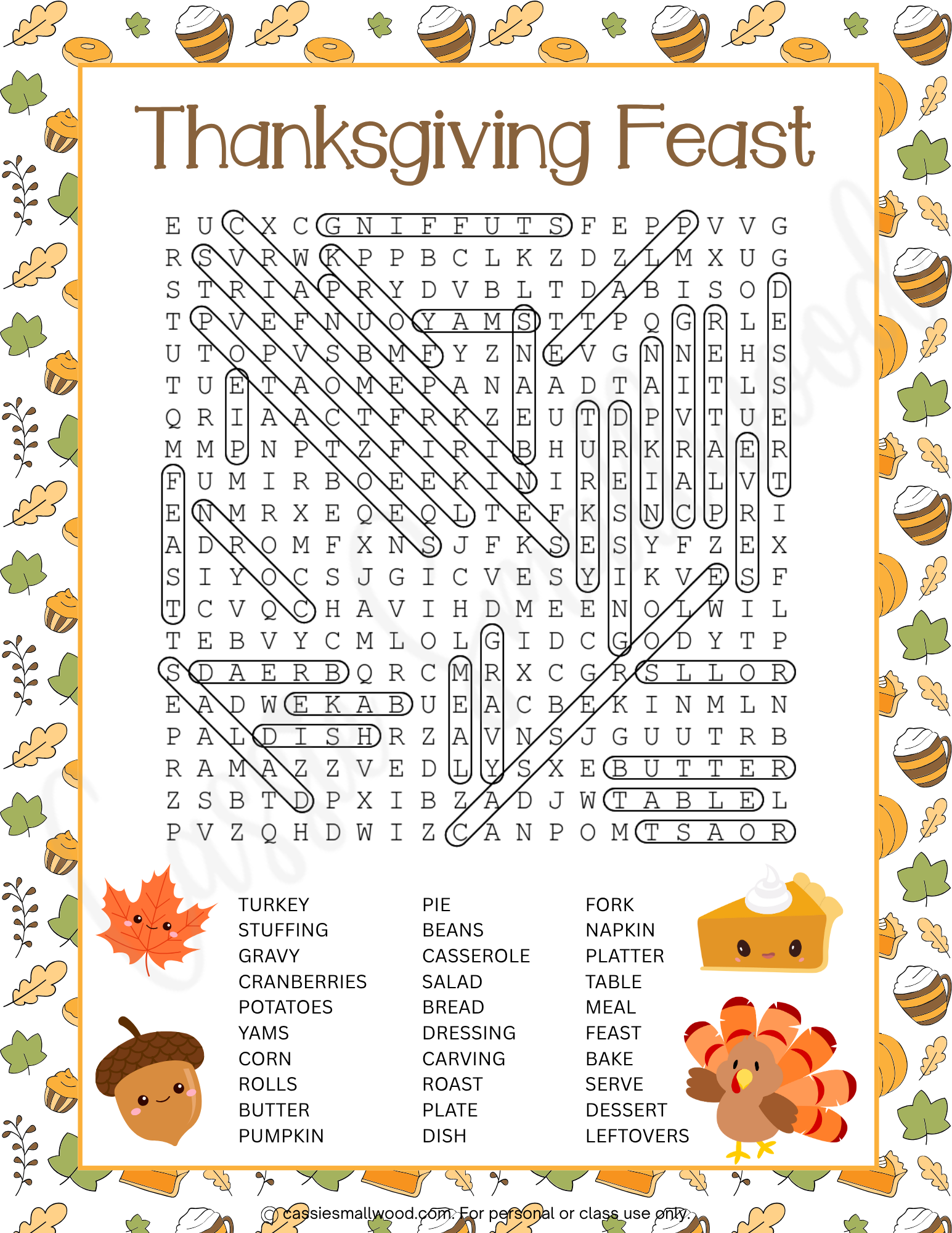 Thanksgiving Feast Word Search Answer Key Cassie Smallwood