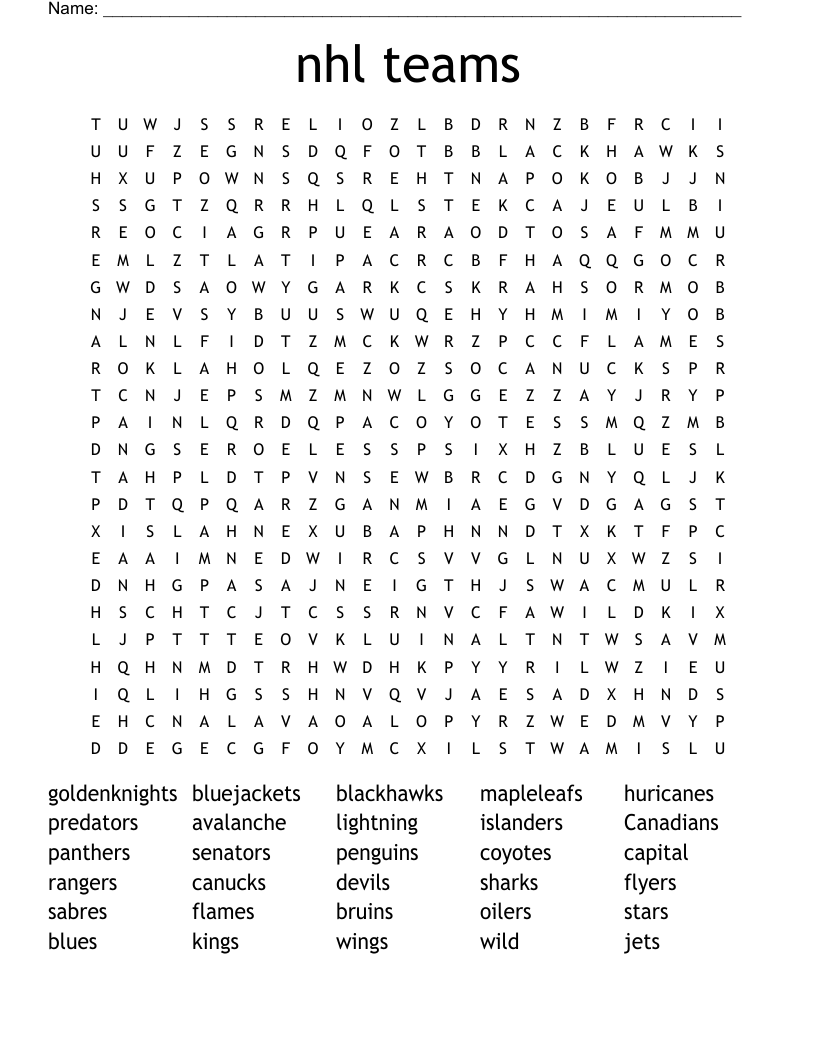 Nhl Teams Word Search WordMint