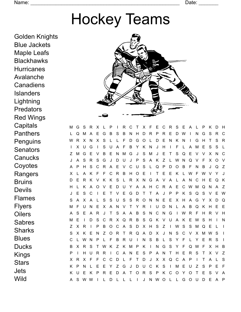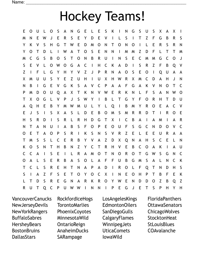 Hockey Teams Word Search WordMint
