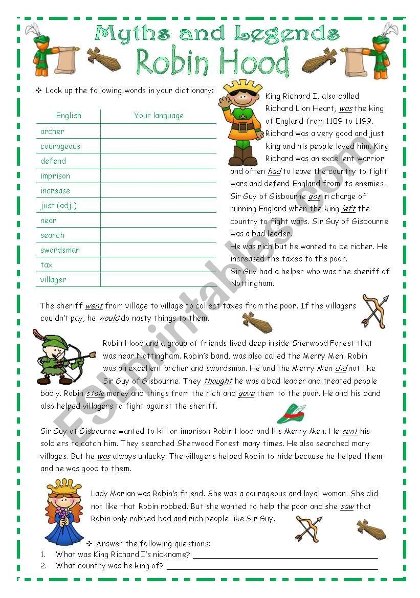 ROBIN HOOD Myths Legends Series 1 ESL Worksheet By Blizzard1