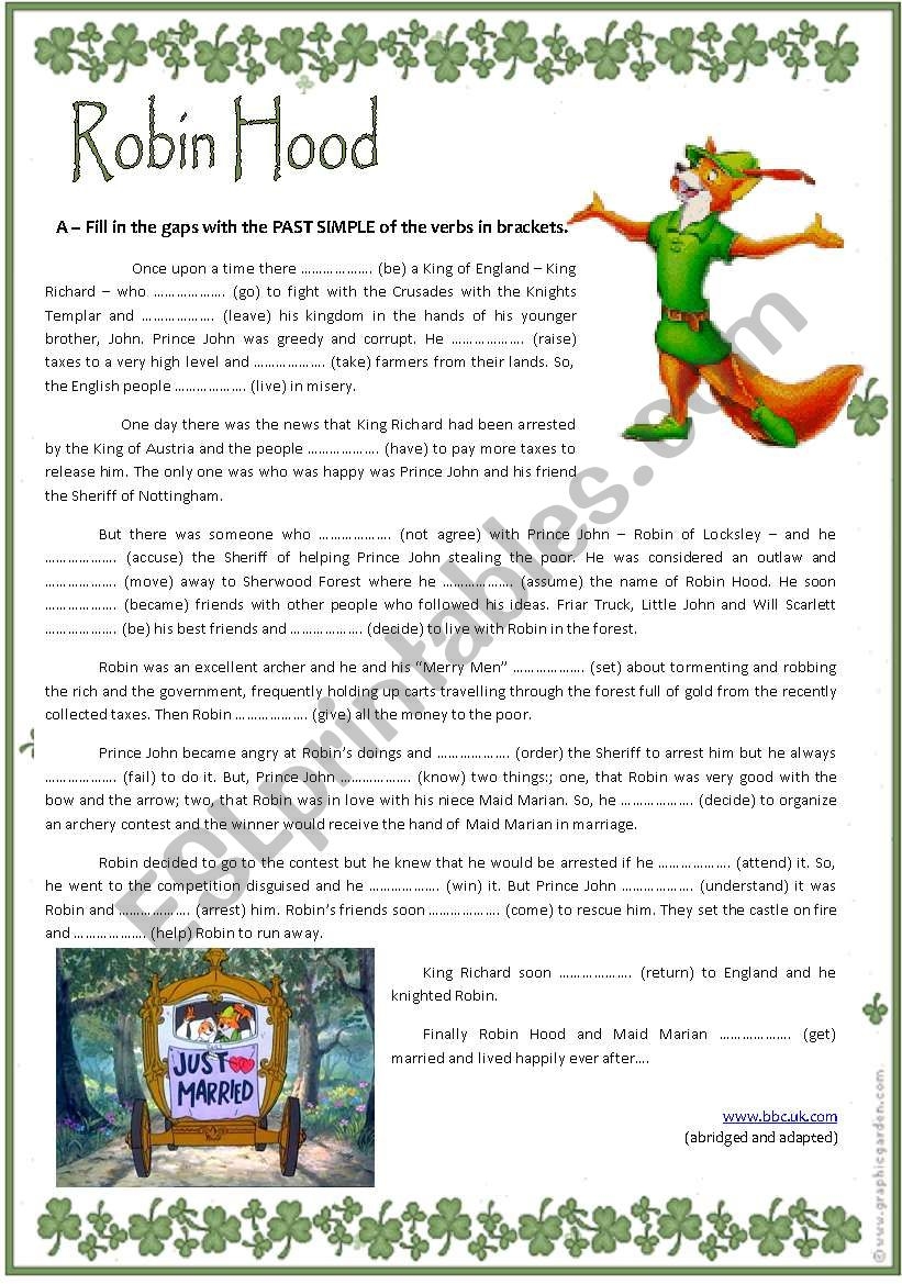 ROBIN HOOD PAST SIMPLE ESL Worksheet By Anafonseca