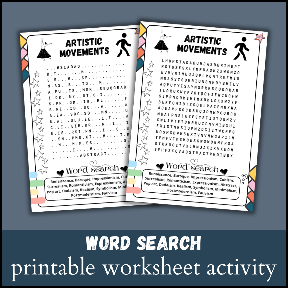 Artistic Movements Word Search Puzzle Worksheet Activity Made By Teachers