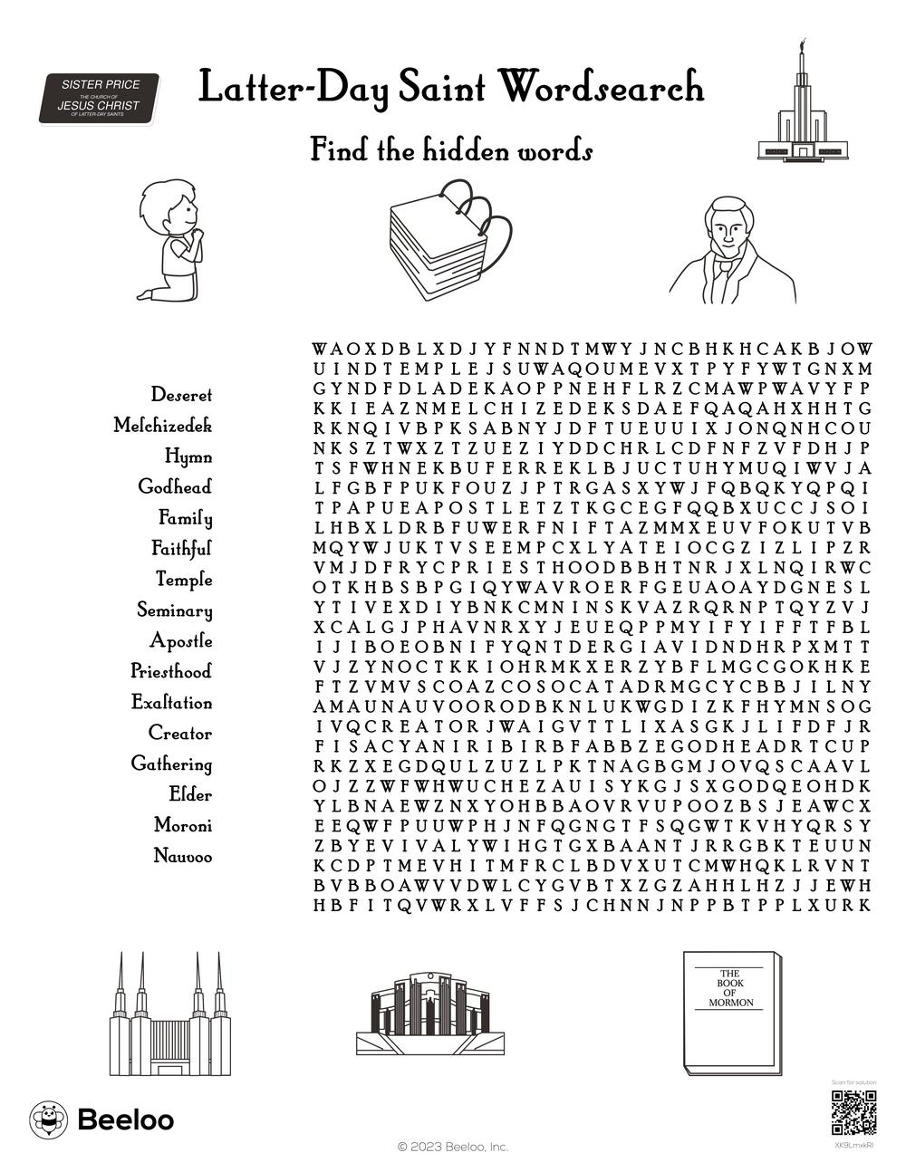 Latter Day Saint Wordsearch Beeloo Printable Crafts And Activities For Kids