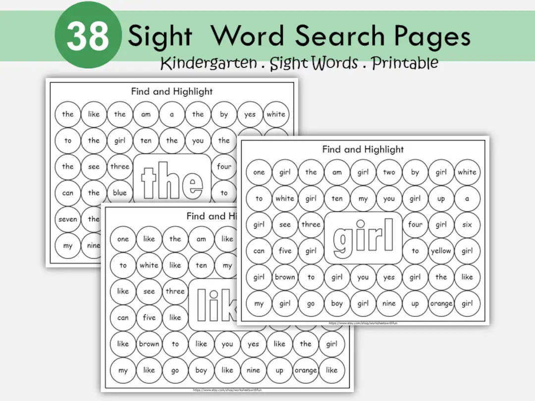 These worksheets are designed to reinforce sight word recognition through a fun and interactive word search game. Your child will have a blast searching for and circling the words while improving their reading skills at the same time.