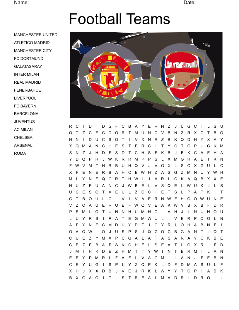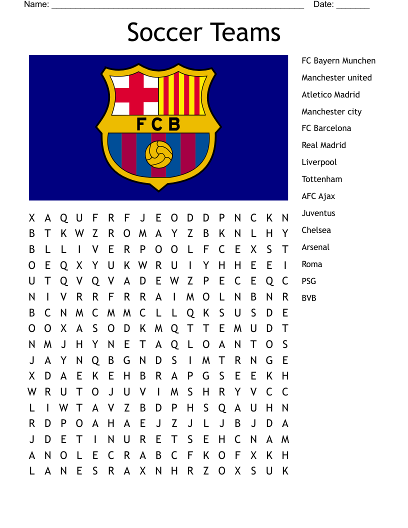 Soccer Teams Word Search WordMint
