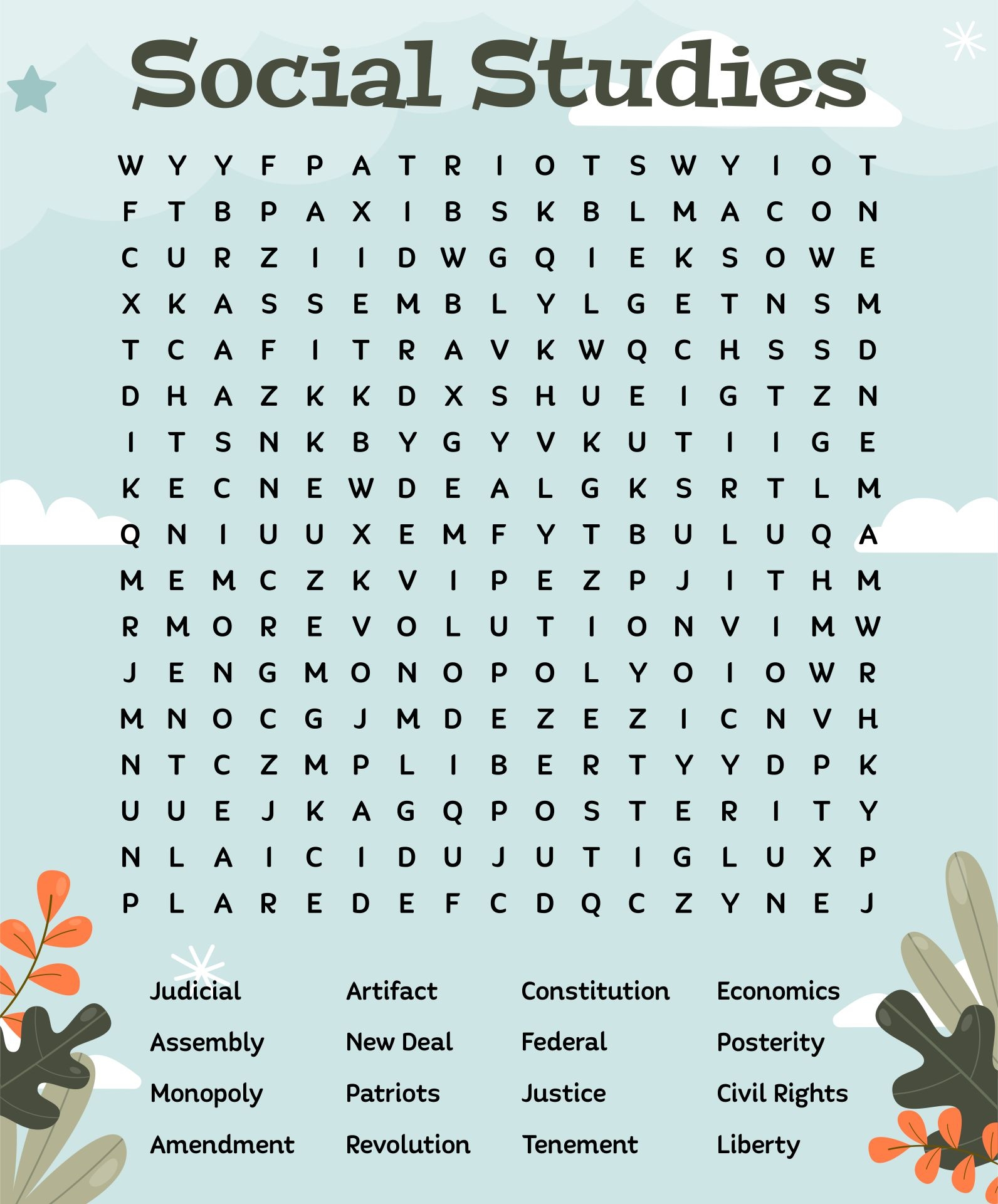 Social studies printable word search puzzles are a fun and engaging way to help students learn about various topics in the social sciences. These puzzles can be a valuable educational tool for teachers, parents, and students alike.