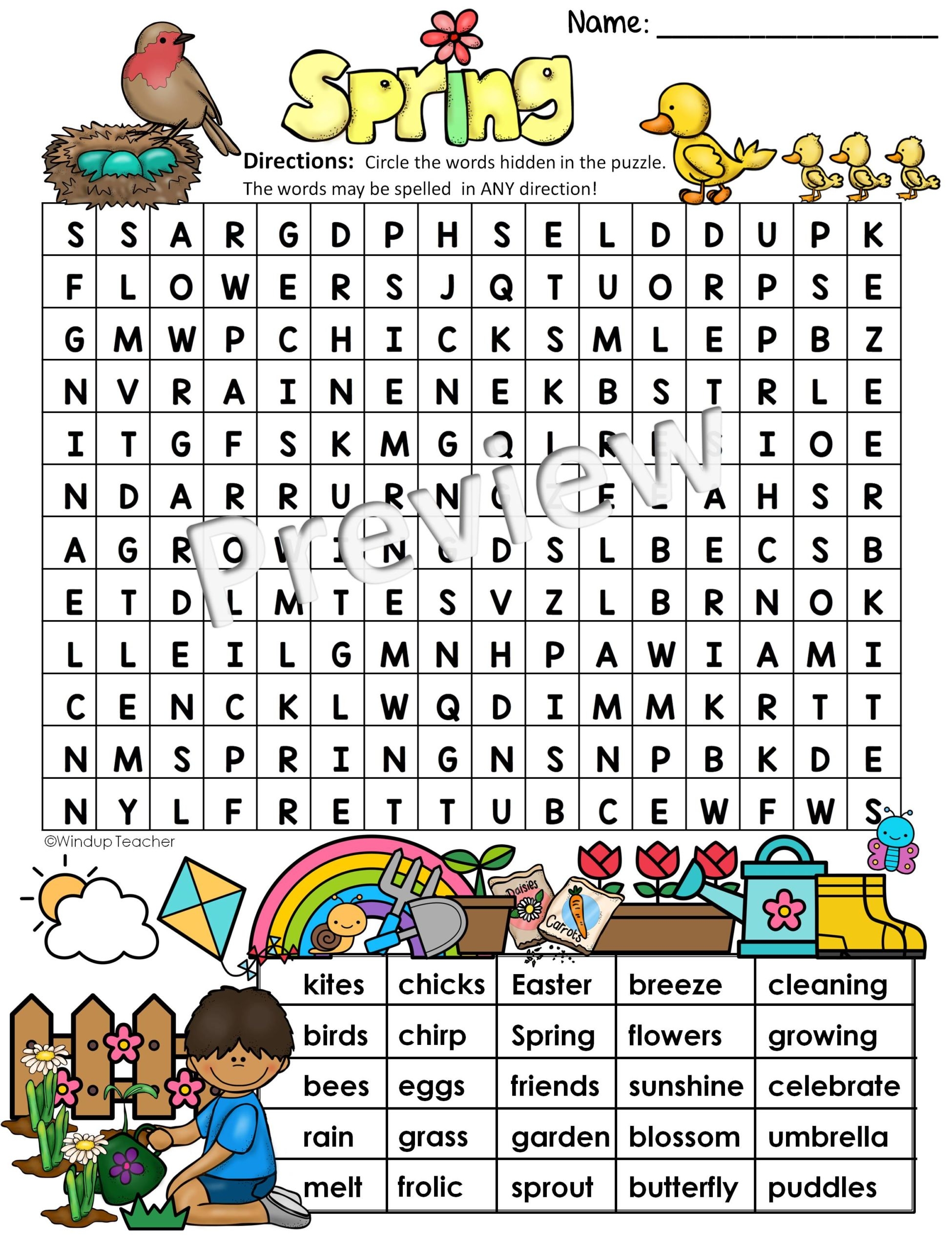 1st Grade 2nd Grade Spring Word Search Puzzle Worksheet Activity Made By Teachers