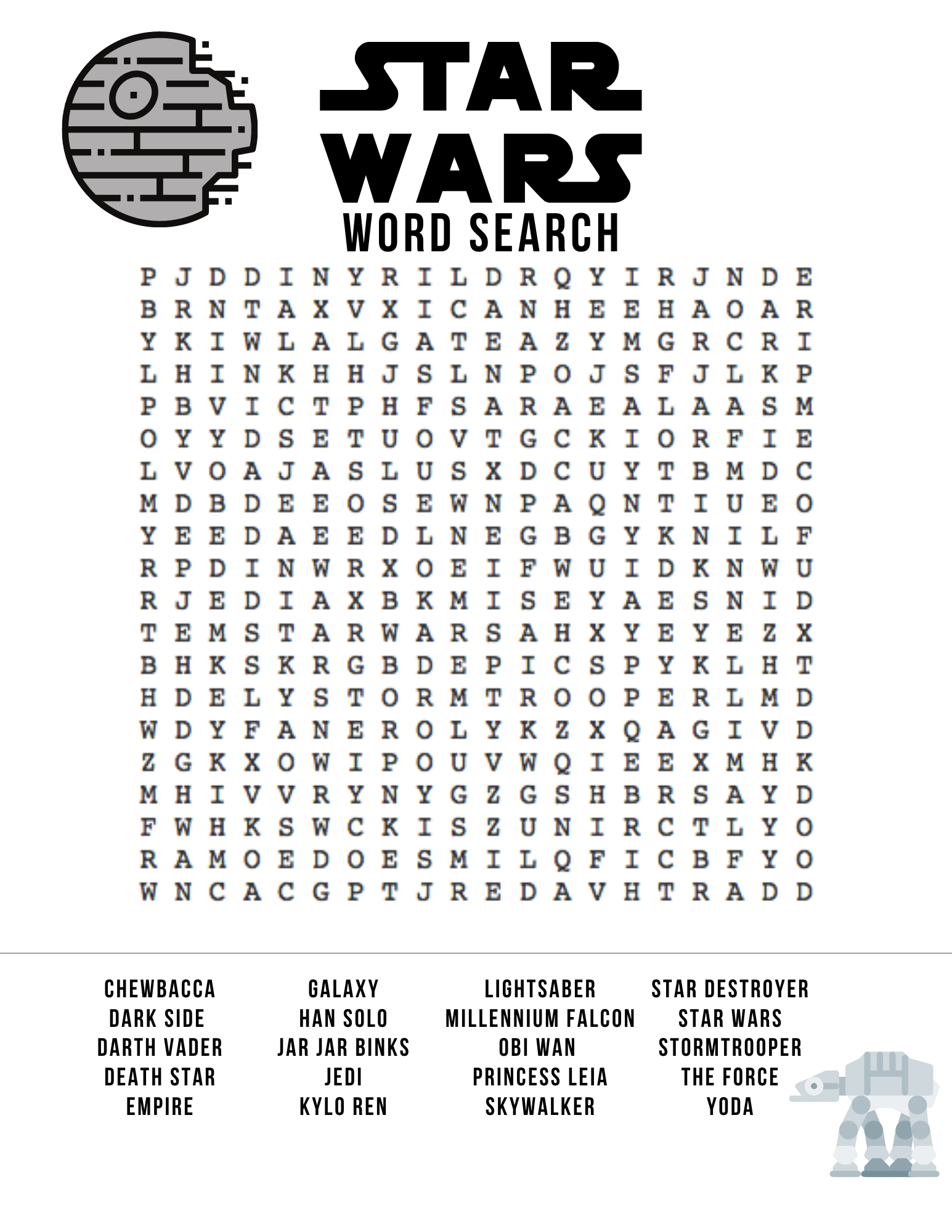 Star Wars Word Search Free Printable