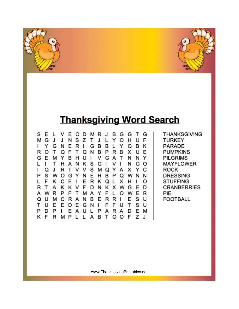 With words like turkey, pumpkin, and gratitude hidden in the puzzle, you’ll be sure to get into the Thanksgiving spirit in no time. Simply print out the word search, grab a pencil, and start searching for those holiday-themed words.