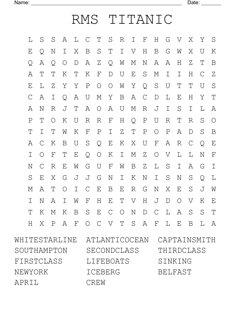 Are you a fan of the Titanic movie? Do you enjoy word search puzzles? If so, you’re in luck! We have a Titanic Word Search Printable that will challenge and entertain you for hours.
