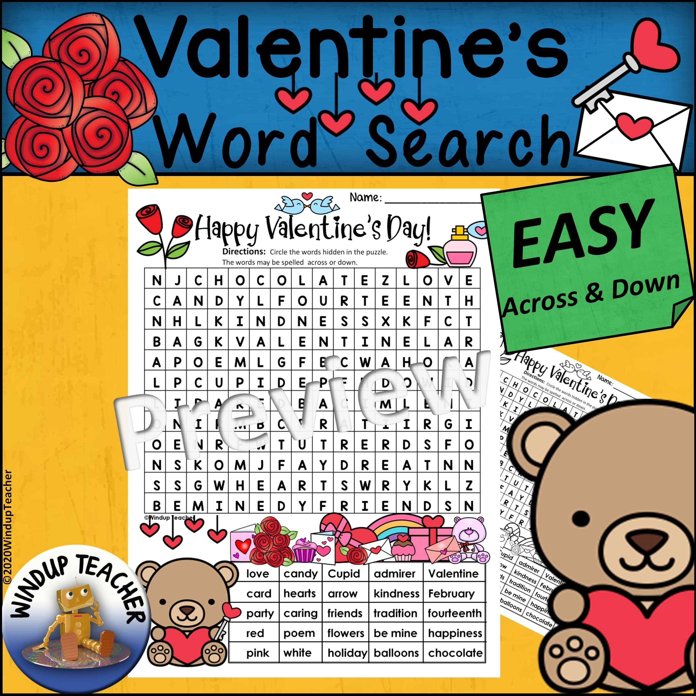 Valentine s Day Word Search EASY Puzzle Ready To Go Made By Teachers