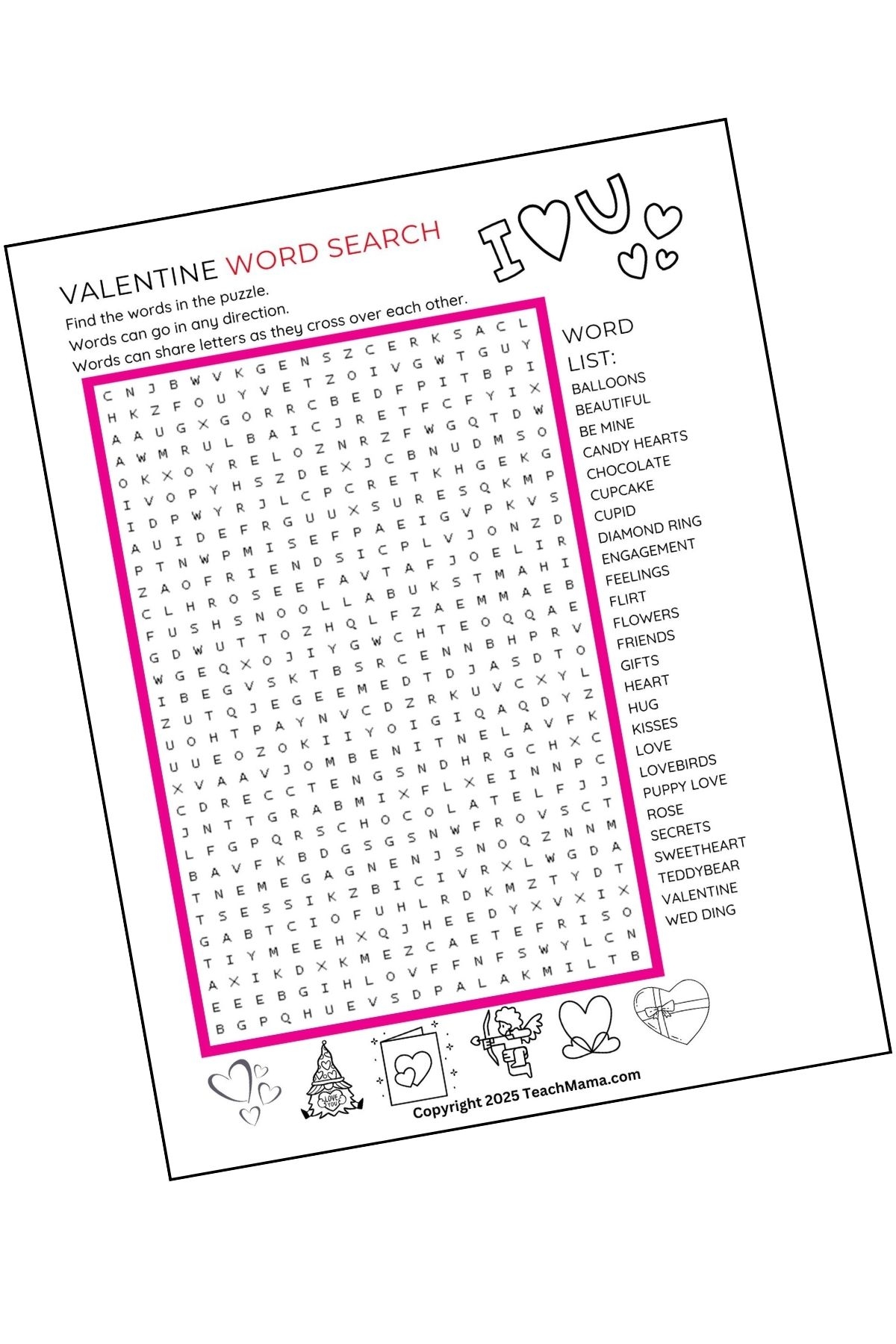 Valentine Word Search Printable