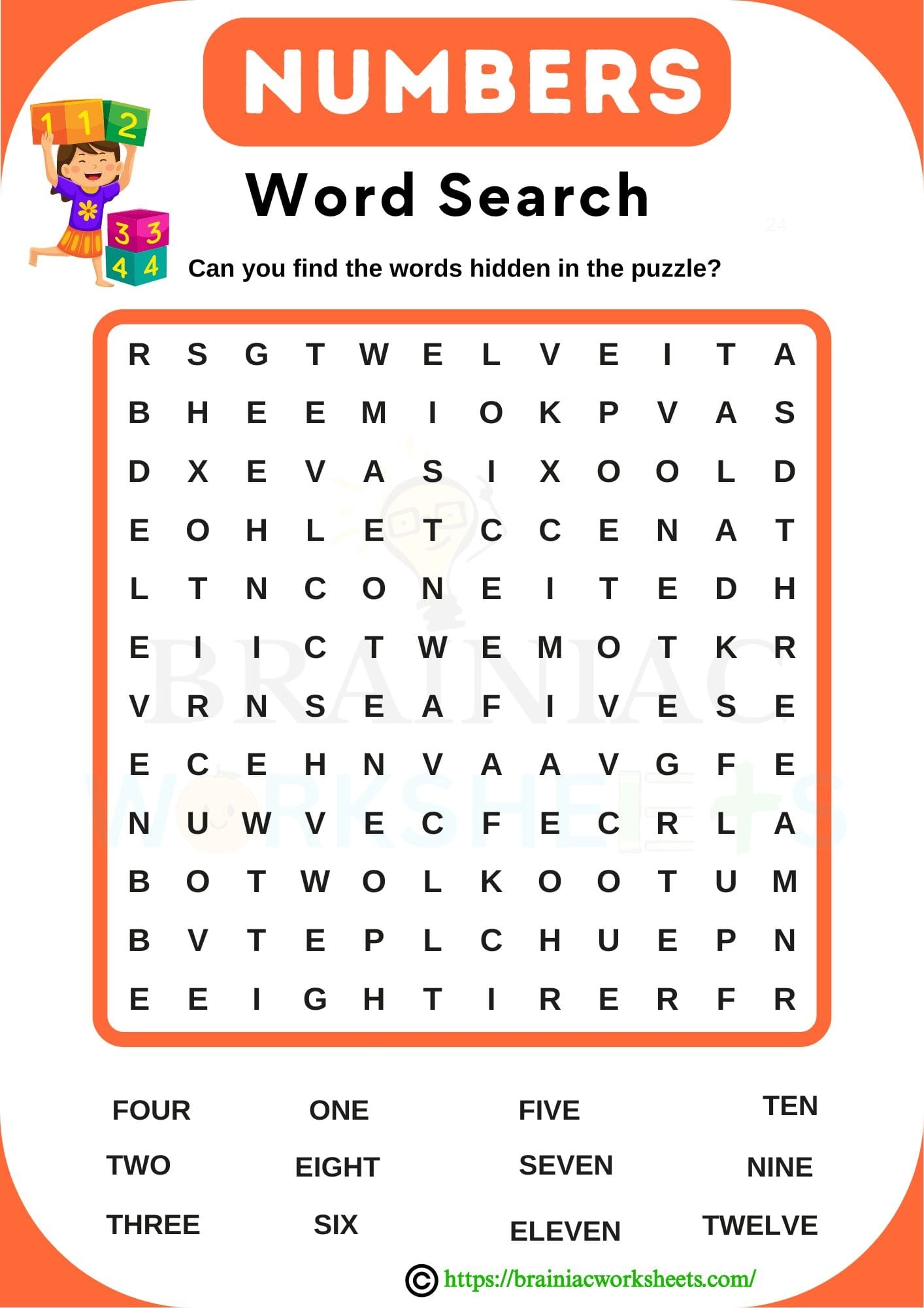 Numbers From 1 To 12 Word Search Maths Worksheet For Class 1 Brainiac Worksheets