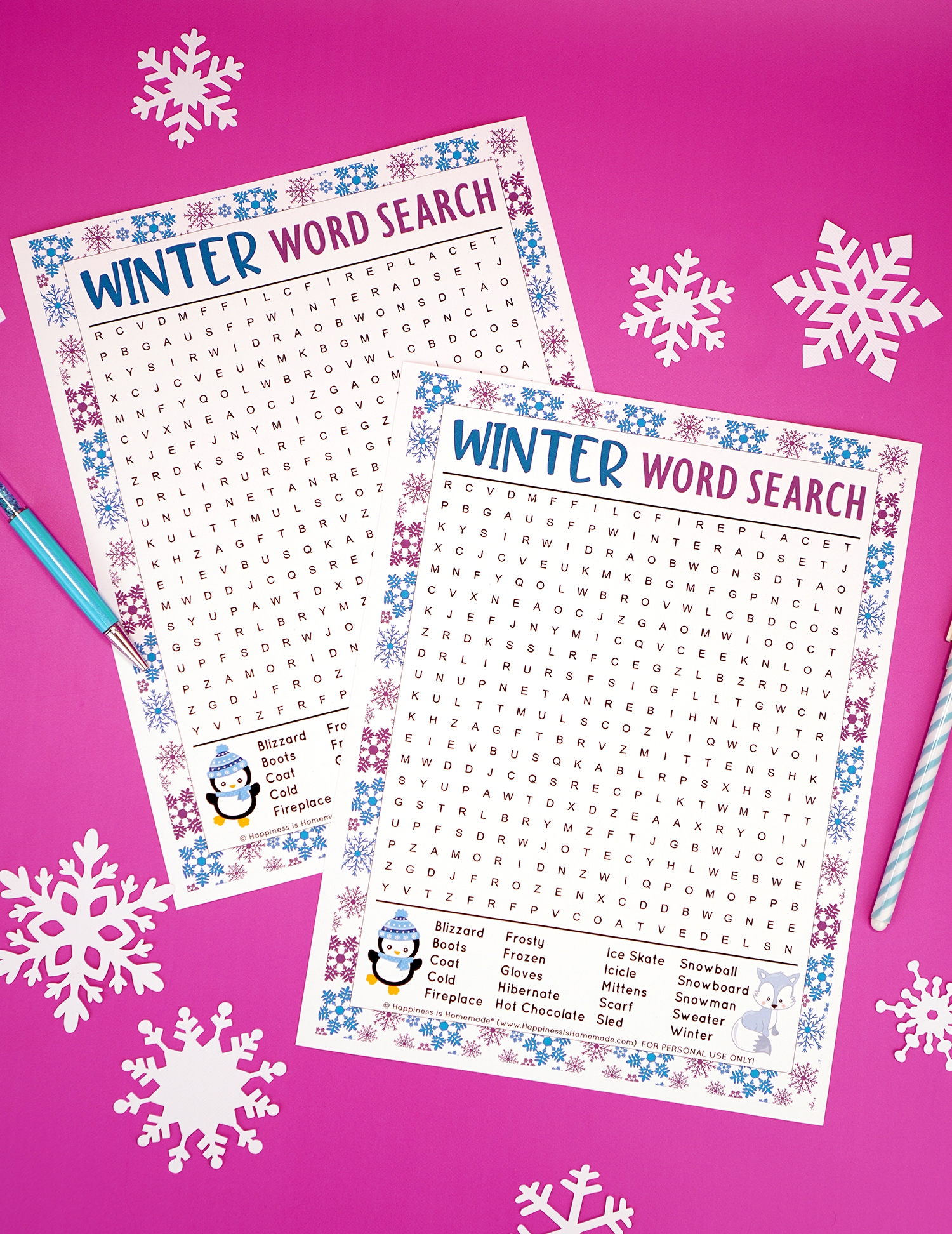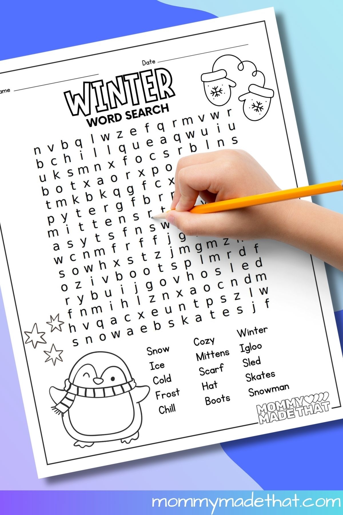 Word searches are a great way to challenge your brain and improve your vocabulary while having fun at the same time. And with a winter theme, you can get into the spirit of the season as you search for words like “snowflake,” “hot cocoa,” and “mittens.”