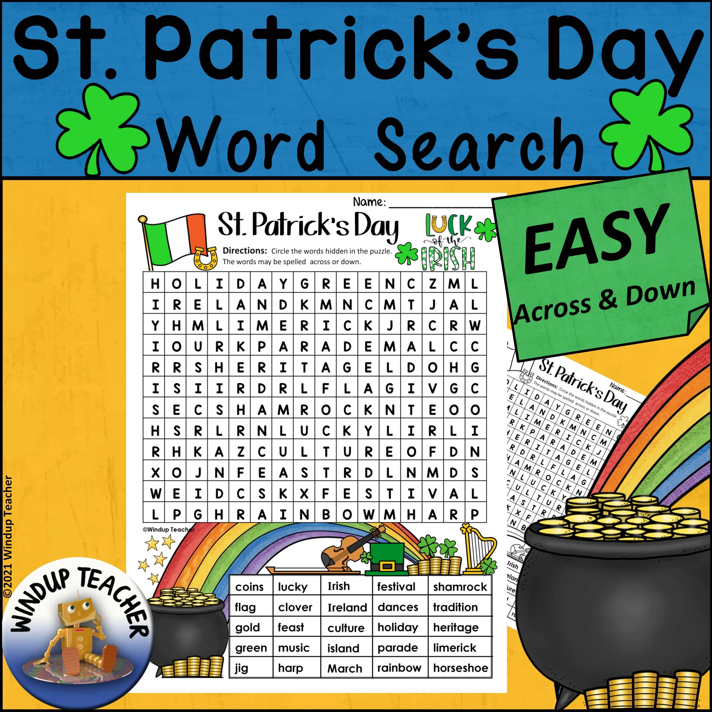 St Patrick s Day Word Search EASY Classful