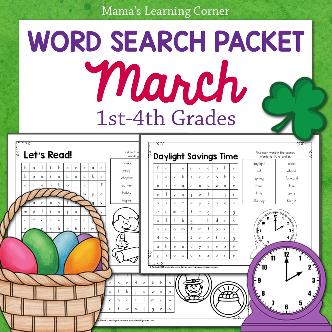 March Word Search Packet St Patrick s Day Daylight Savings Time Easter Classful