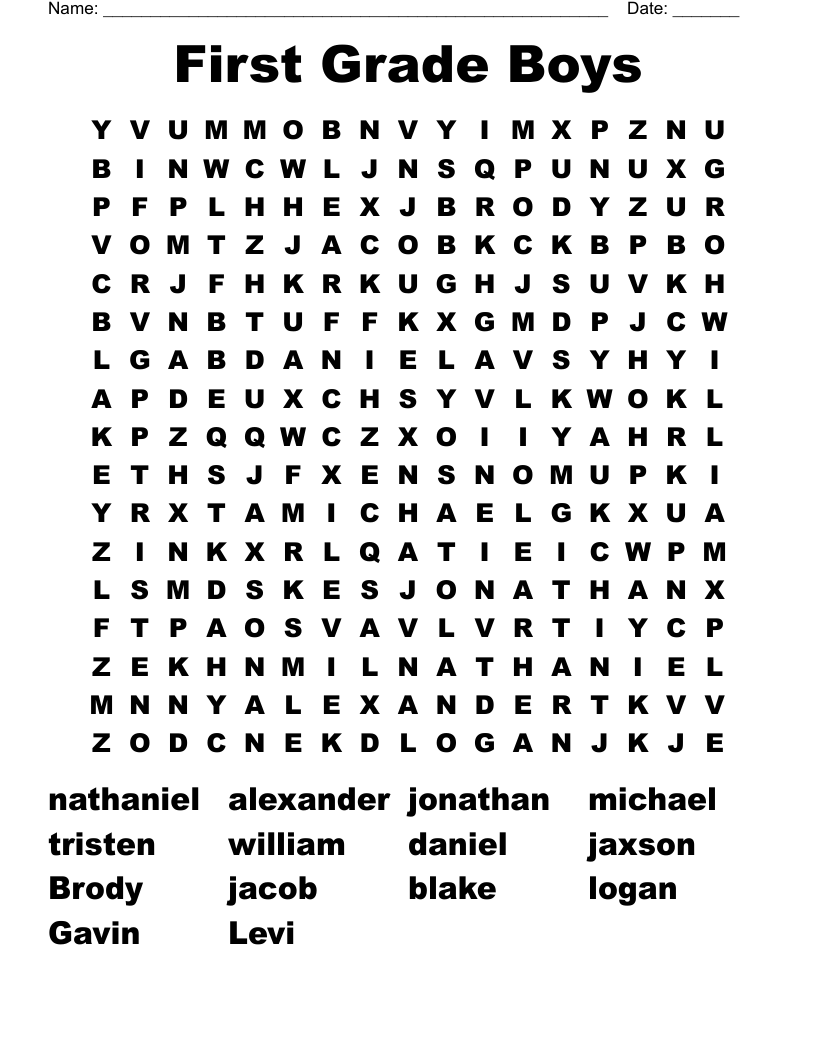 First Grade Boys Word Search WordMint