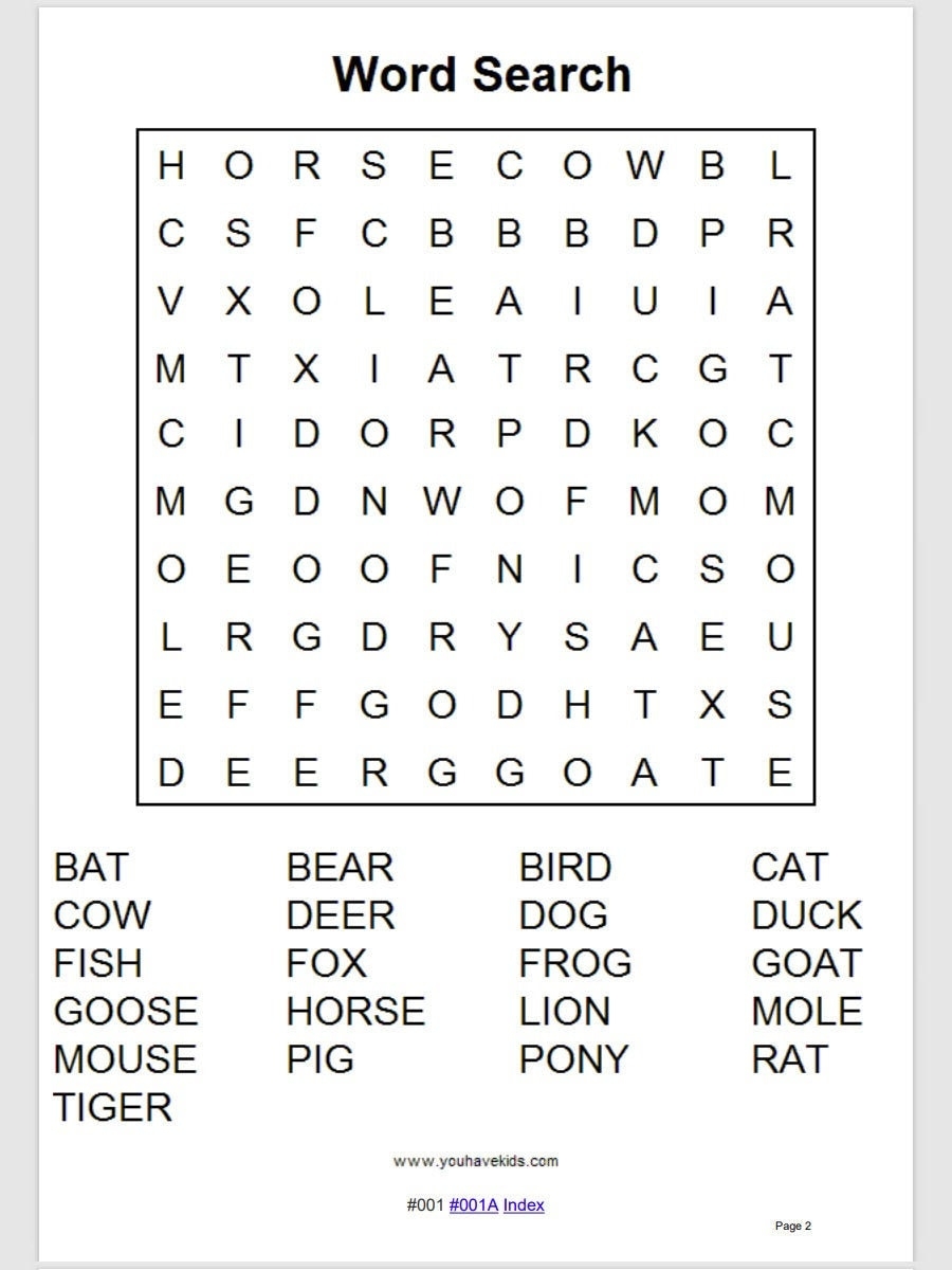 100 Printable Grade 1 Animals Word Searches With Answers Etsy Worksheets Library