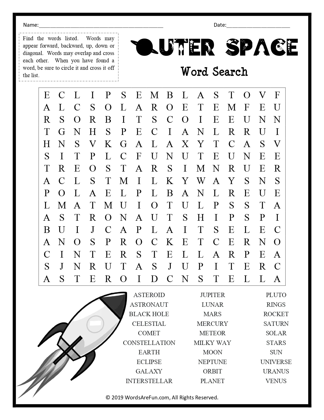 Outer Space Word Search Printable Science Vocabulary Activity For Astronomy Solar System Lessons Payhip