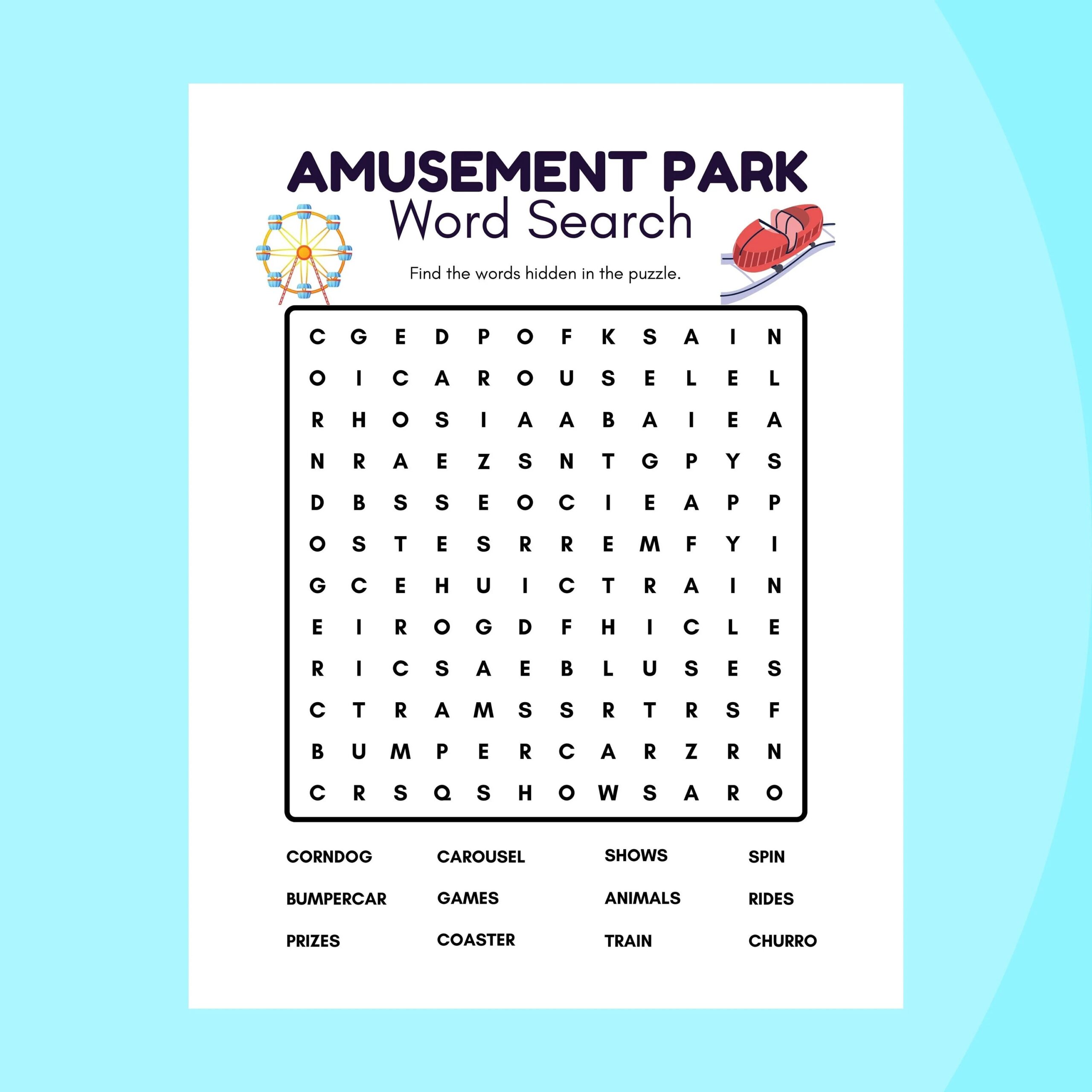 Word Search Puzzles Activity For Kids Circus Dogs Amusement Park Searching Games Printable Digital Download Etsy