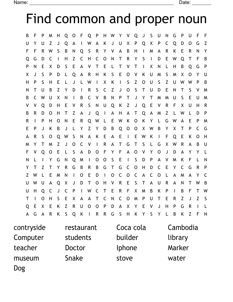 Find Common And Proper Noun Word Search WordMint