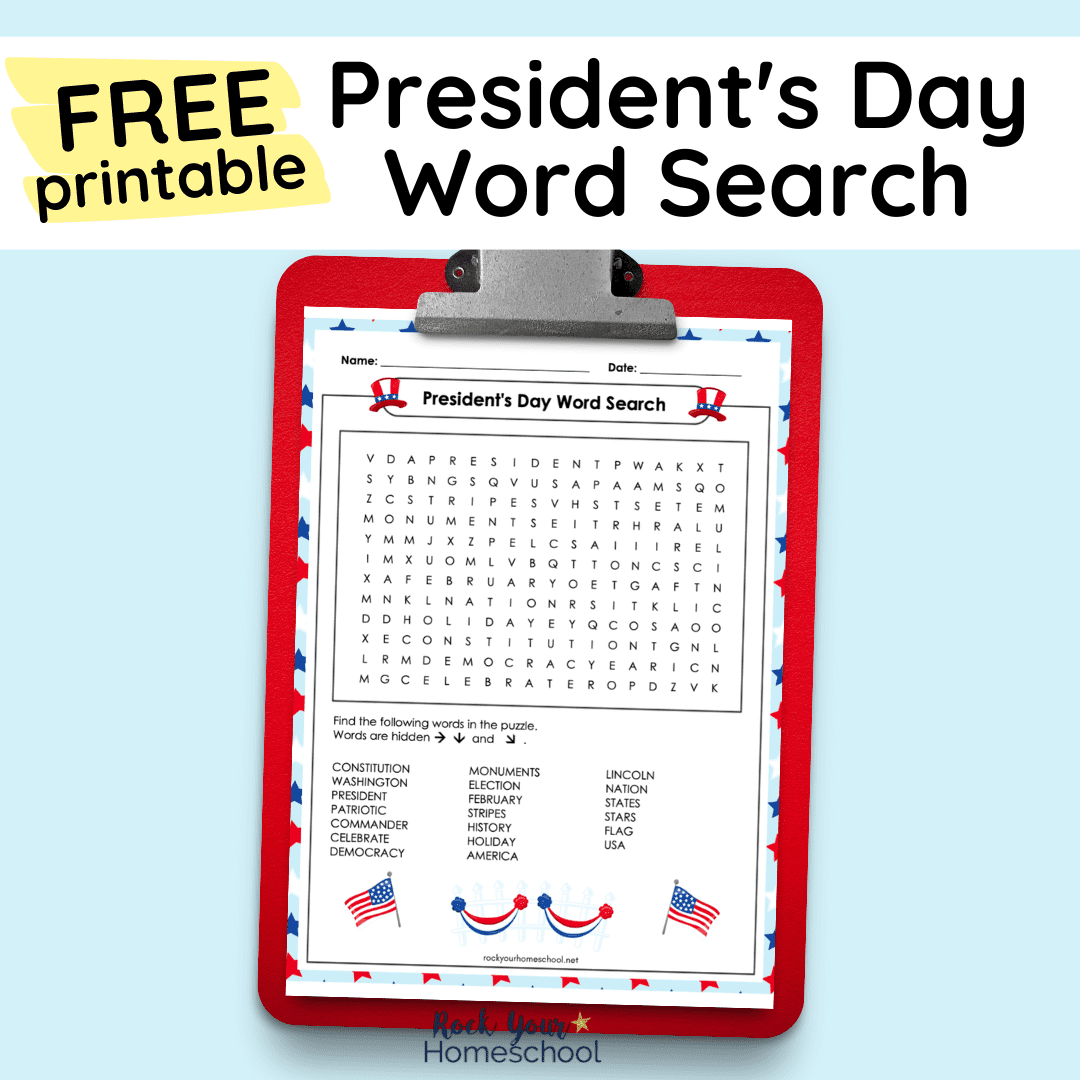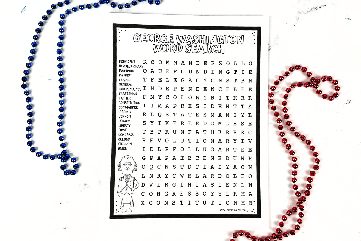 free george washington word search printable