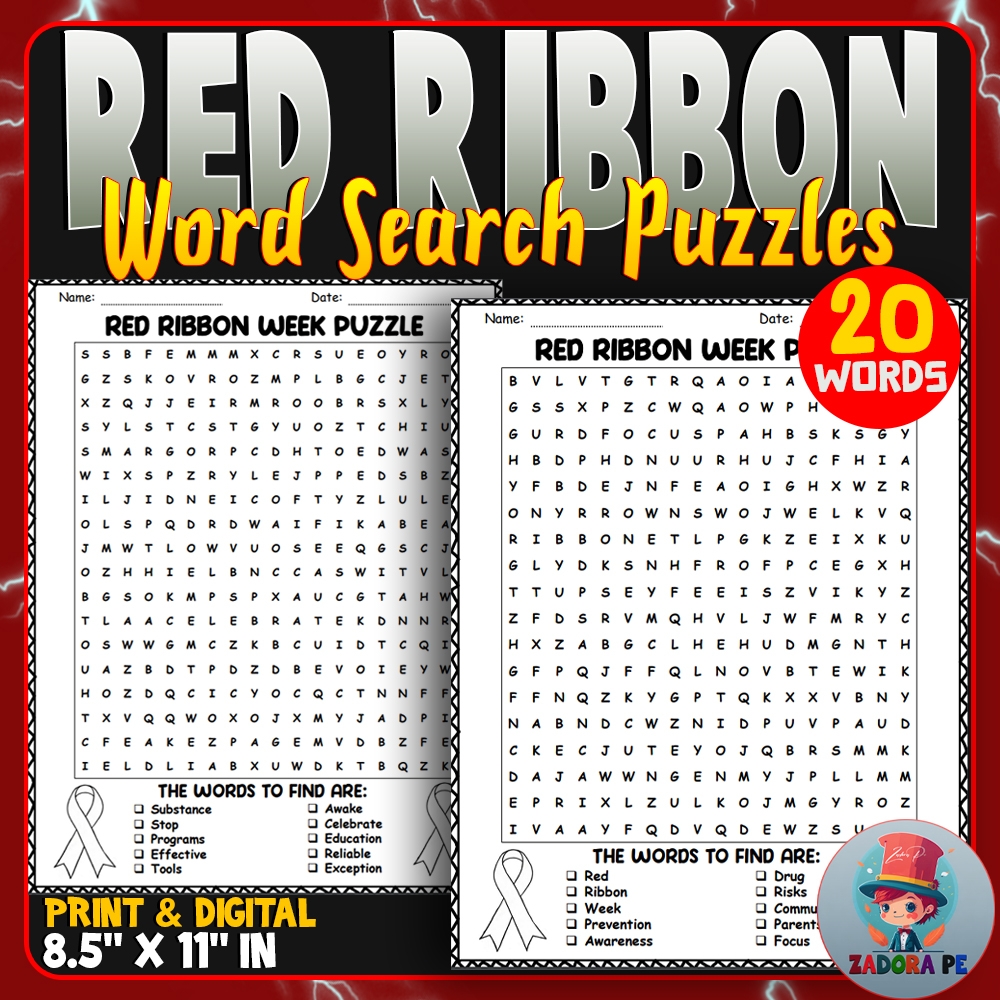 Red Ribbon Week Printable Drug Free Word Search Crossword Mad Lib Tracing Activity Pack Classful