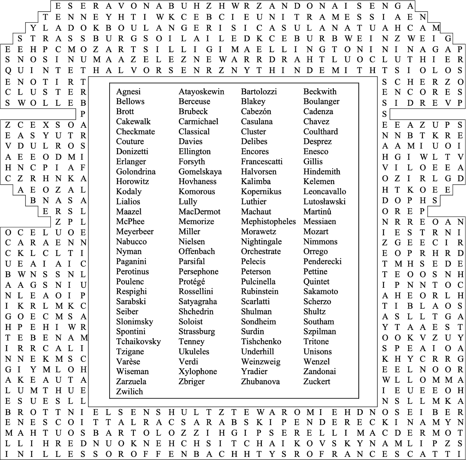 Pettine A Classical Music Word Search Puzzle By Allan Rae