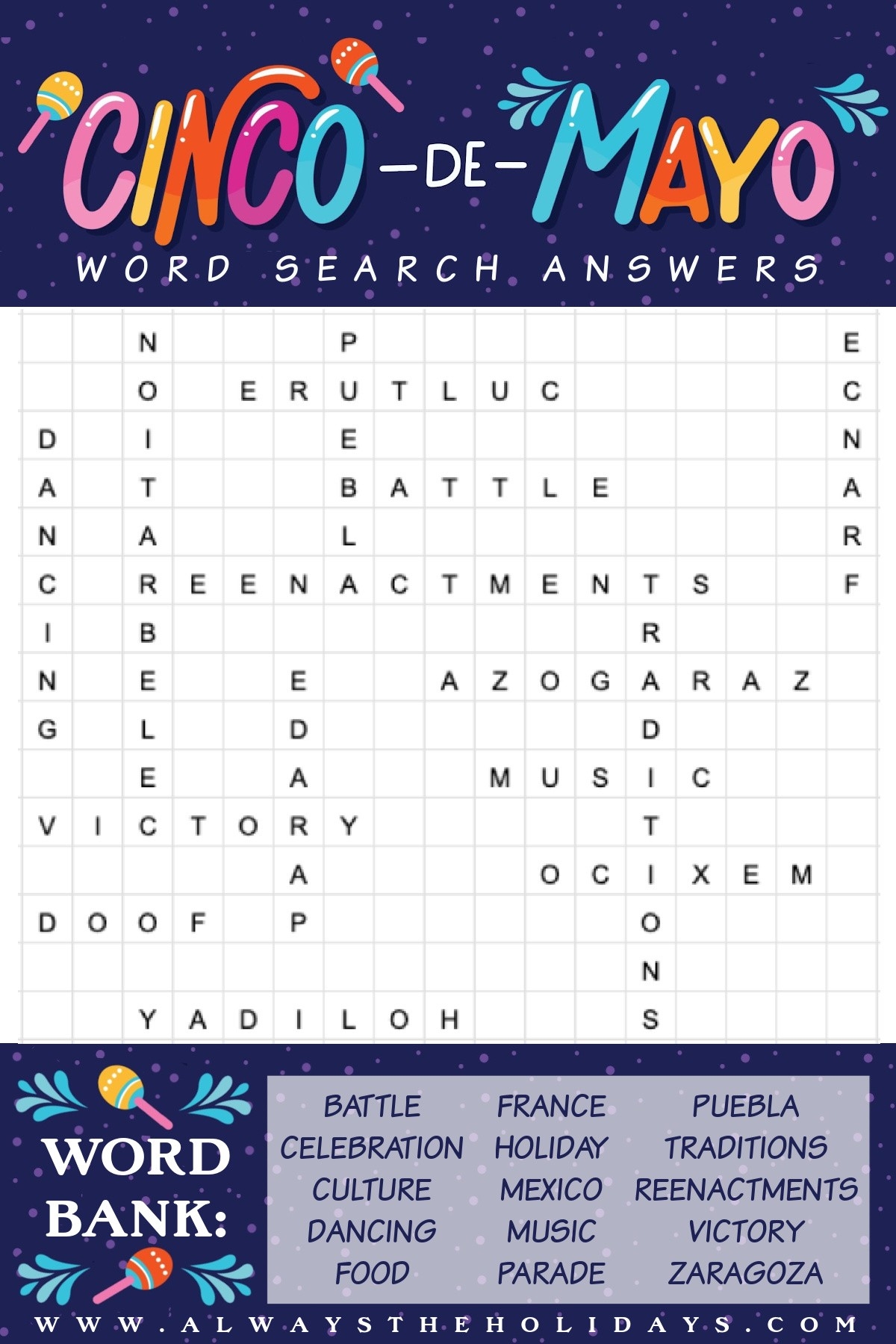 Free Cinco De Mayo Word Search Printable Answer Key Included