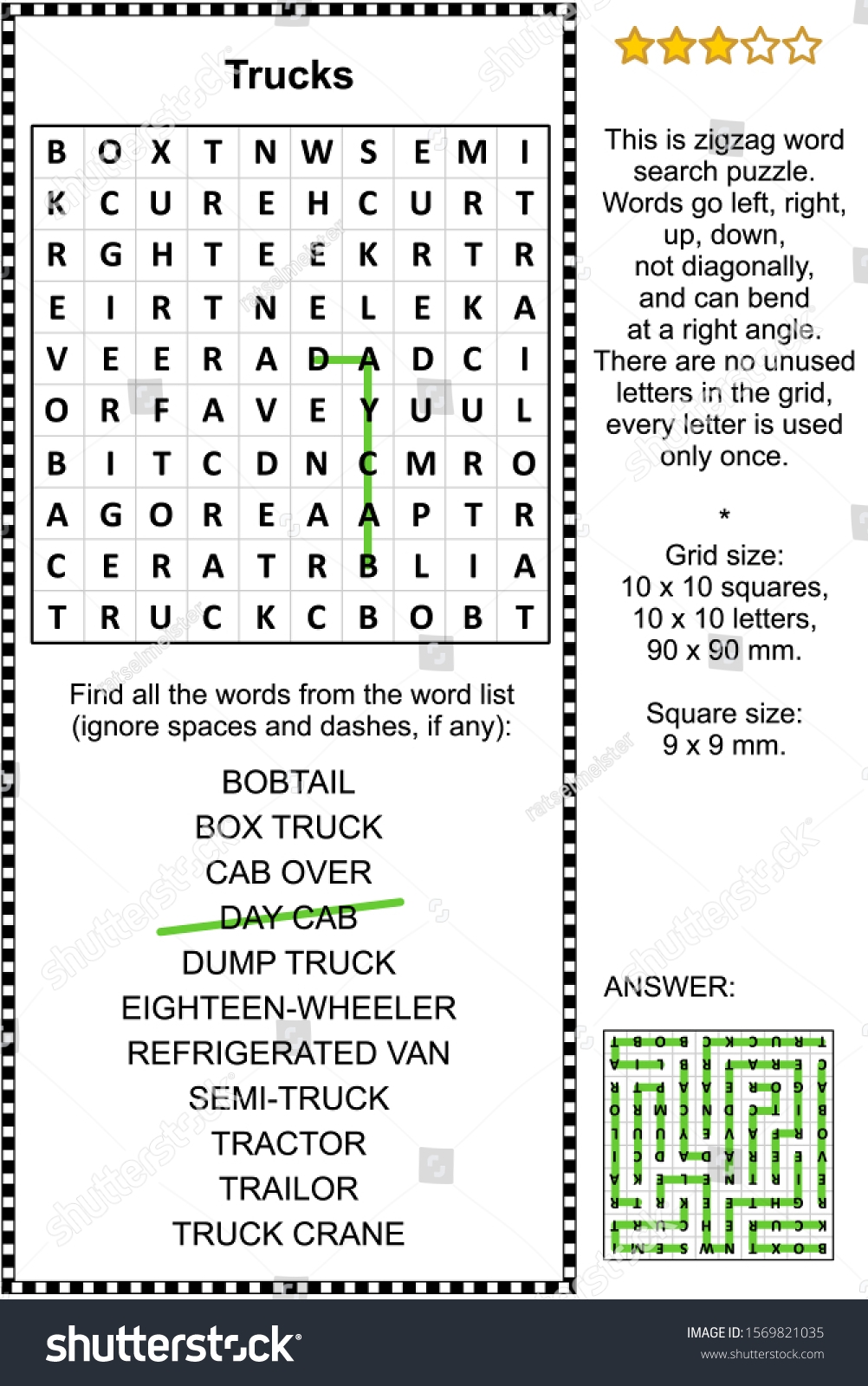 Trucks Zigzag Word Search Puzzle Suitable Stock Illustration 1569821035 Shutterstock