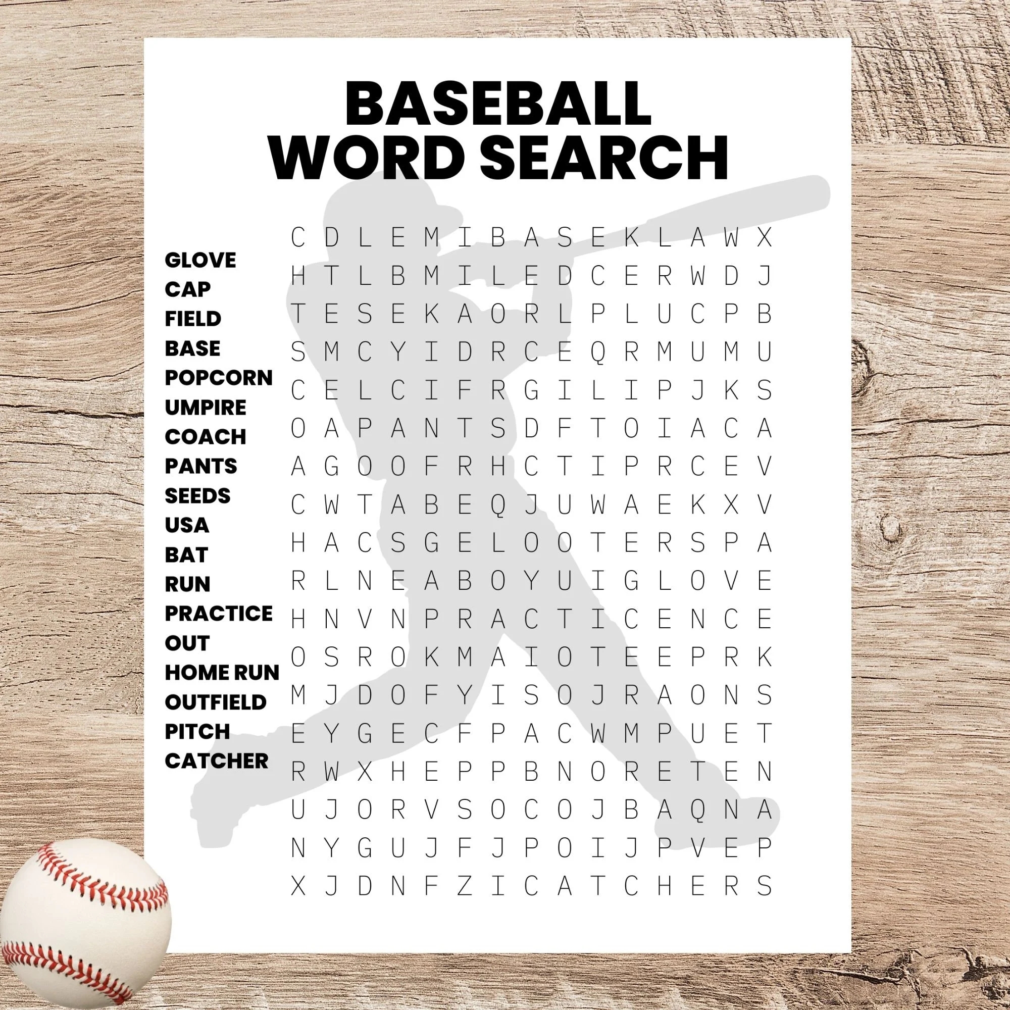 Baseball Word Search Printable sports Printable Activity For Kids Etsy