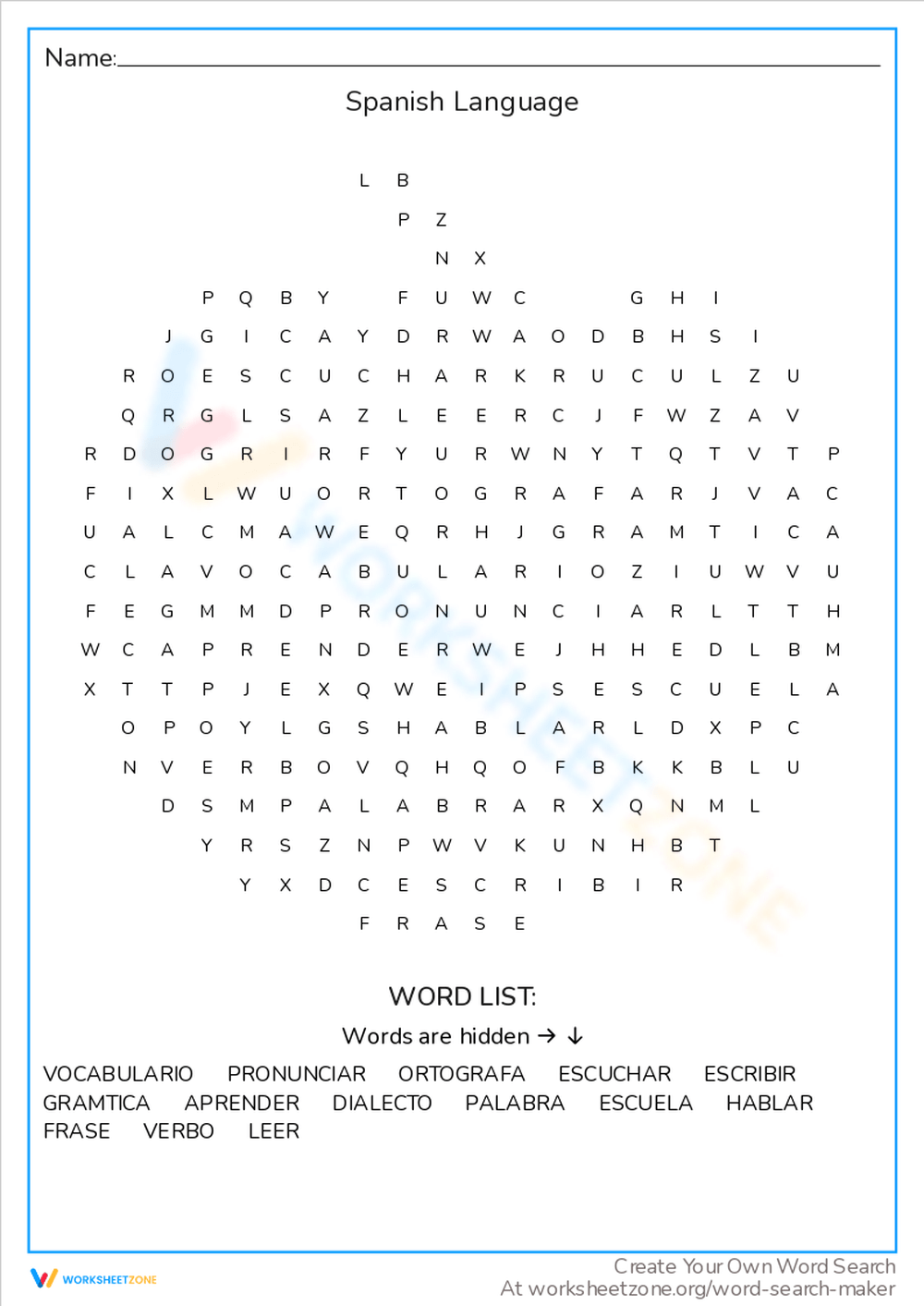 In conclusion, word searches in Spanish printable are a fantastic resource for language learners of all levels. They offer a fun and engaging way to practice vocabulary and improve cognitive skills. So why not give them a try today and see how much you can learn while having a great time?
