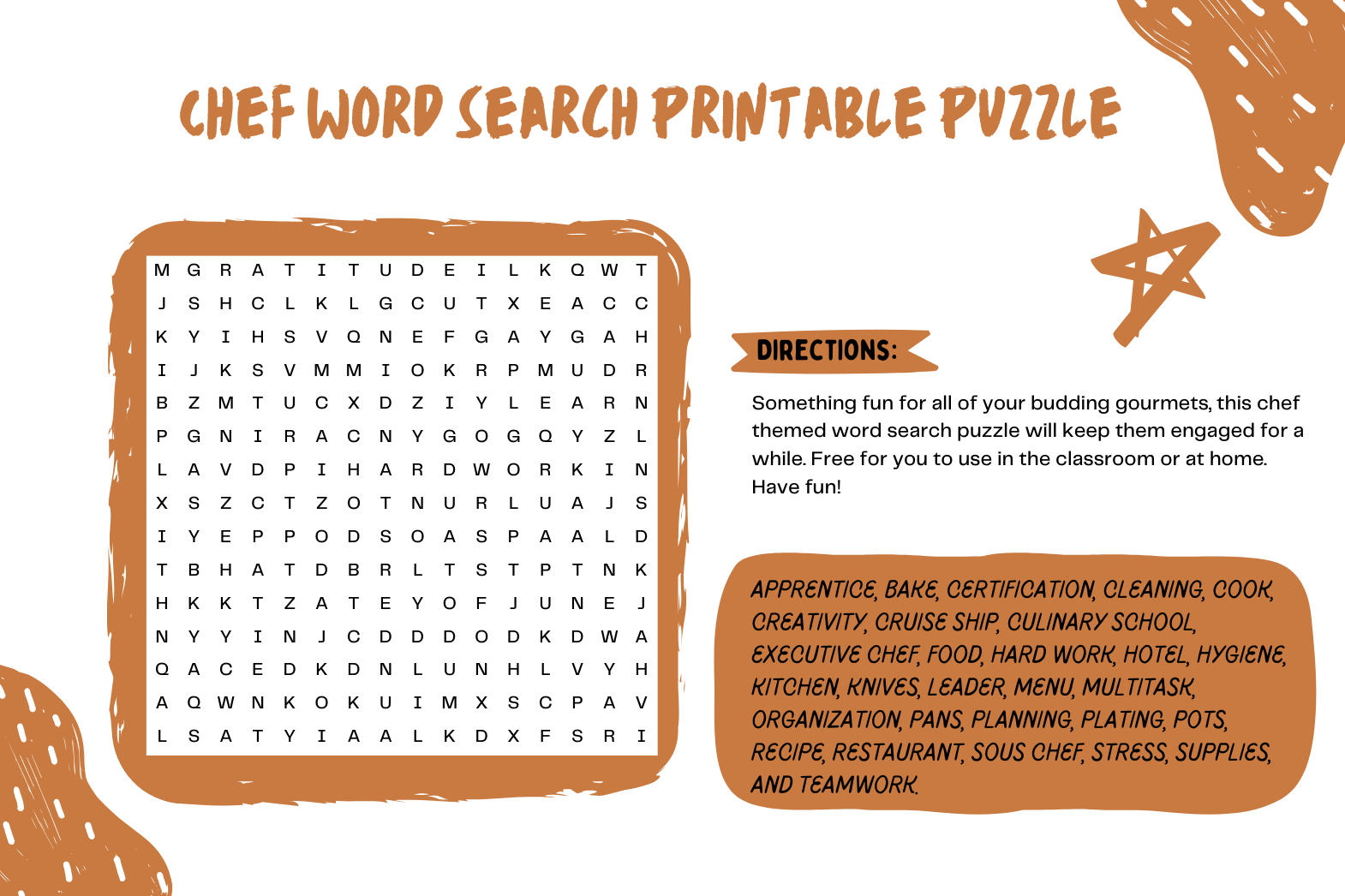 Buy High quality Stock Photo Graphics Fonts Design Templates Chef Word Search Printable Puzzles